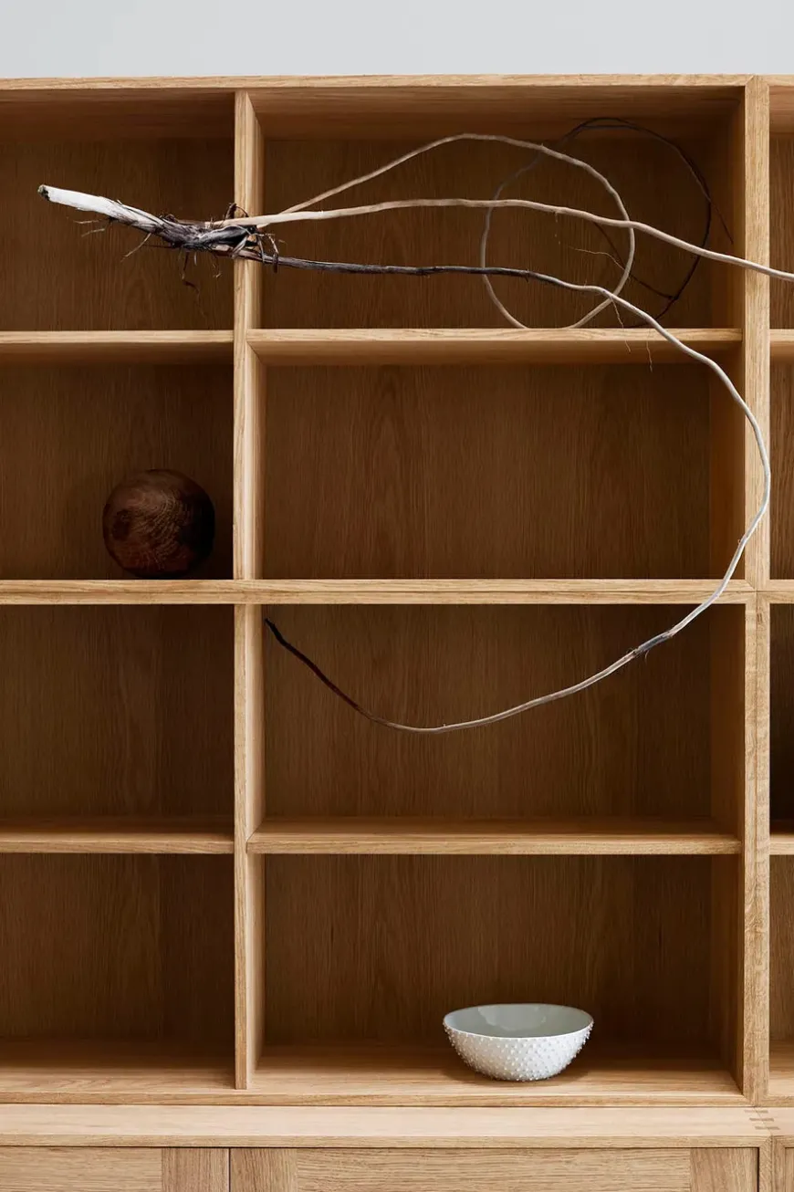FK63 Bookcase System FK63 skabet fra Carl Hansen & Søn er tegnet af Preben Fabricius og Jørgen Kastholm i 1963 og er et særpræget møbel til ethvert rum. FK63 Reolsystemet tilbydes i en vægmonteret udgave såvel som i et fritstående design, der hviler på et slankt stel i pulverlakeret stål.