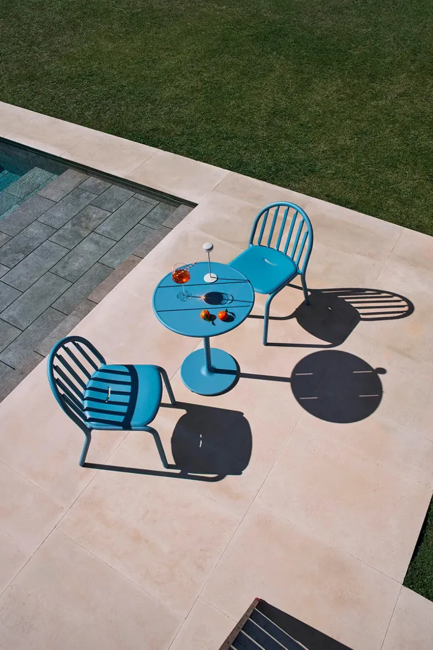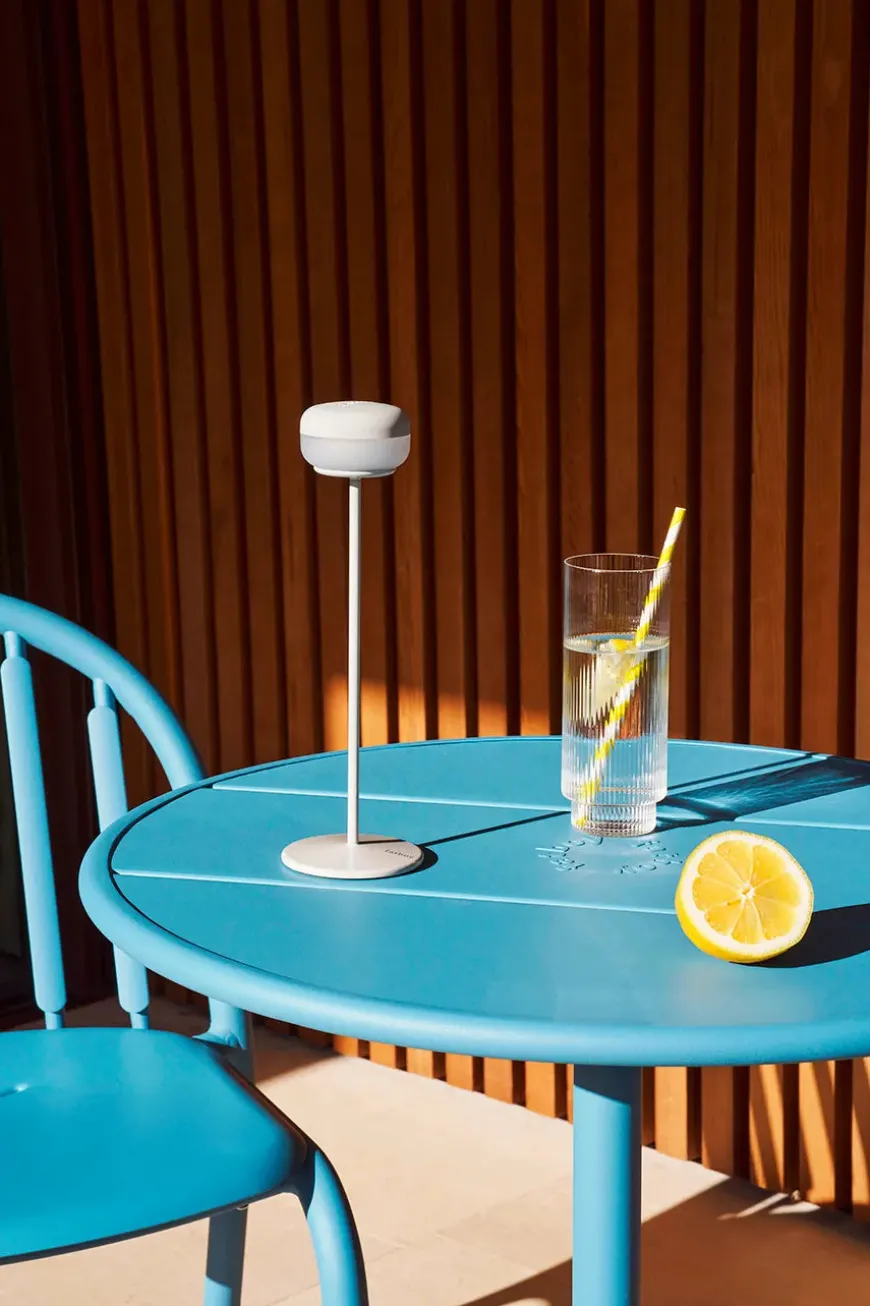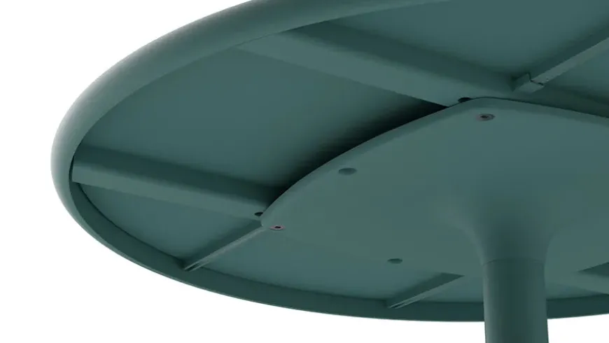 Fred’s Bistreau er et ideelt valg til balkoner, altaner eller små haver. Det runde bistrobord har en robust bordplade af aluminiumslameller. Den tunge støbejernsfod og de justerbare ben under foden, sikrer stabilitet, selv på ujævne underlag. Bordet er fremstillet i vejrbestandige materialer og kan stå ude hele året.
