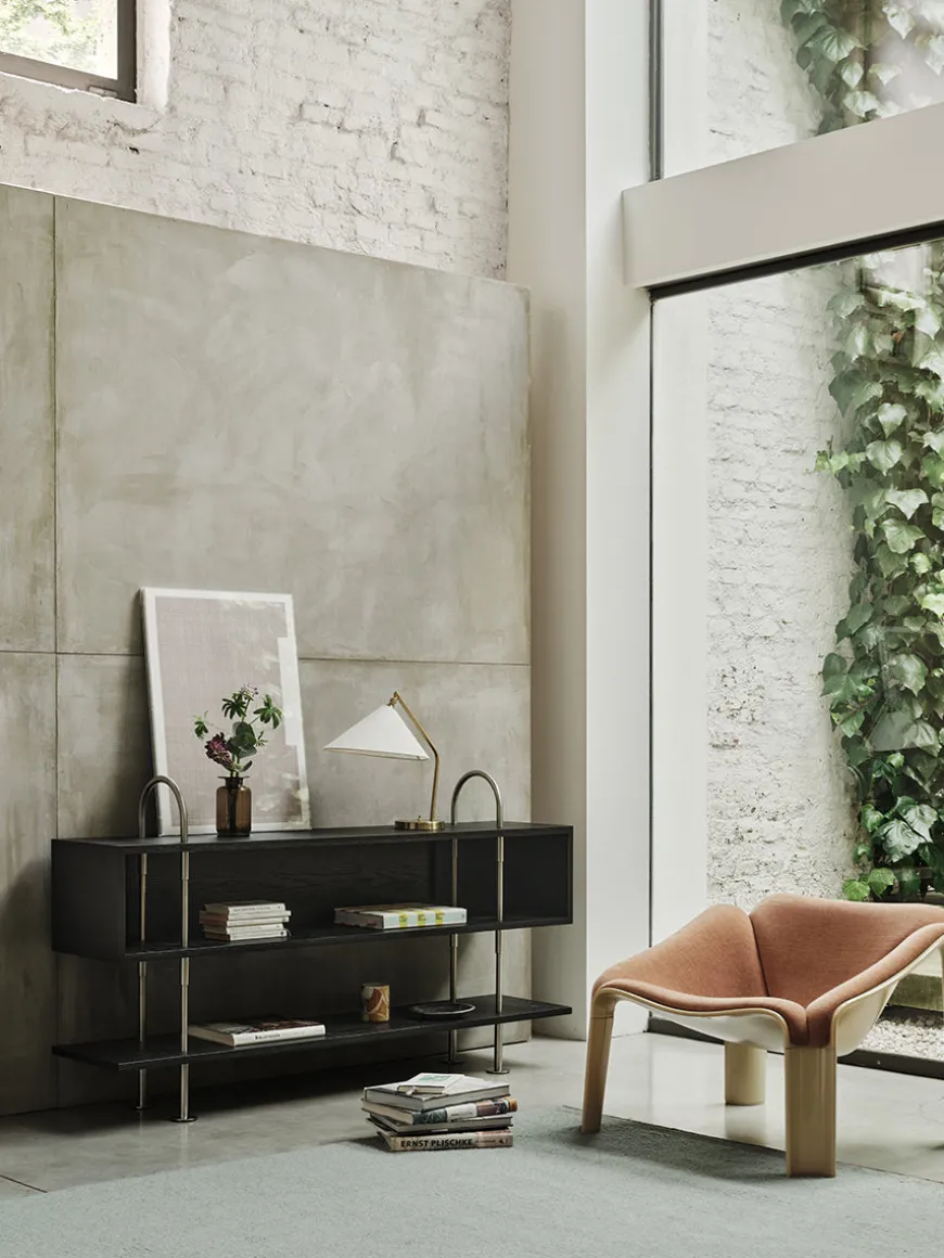 Gräshoppa bordlampen forener Greta M. Grossmans ikoniske silhuet fra 1947 med en ny, håndlavet skærm i naturcanvas. Den forlængede skærm og den vinklede messingstamme giver et skulpturelt udtryk, mens det varme, bløde lys gør lampen ideel ved skrivebordet, på reolen eller som stemningsfuld læselampe ved sengen. Skærmen kan justeres, så du former lyset efter behov, og den runde base i poleret messing fuldender det tidløse look. Den integrerede afbryder på foden og den 230 cm tekstilledning gør daglig brug enkel.