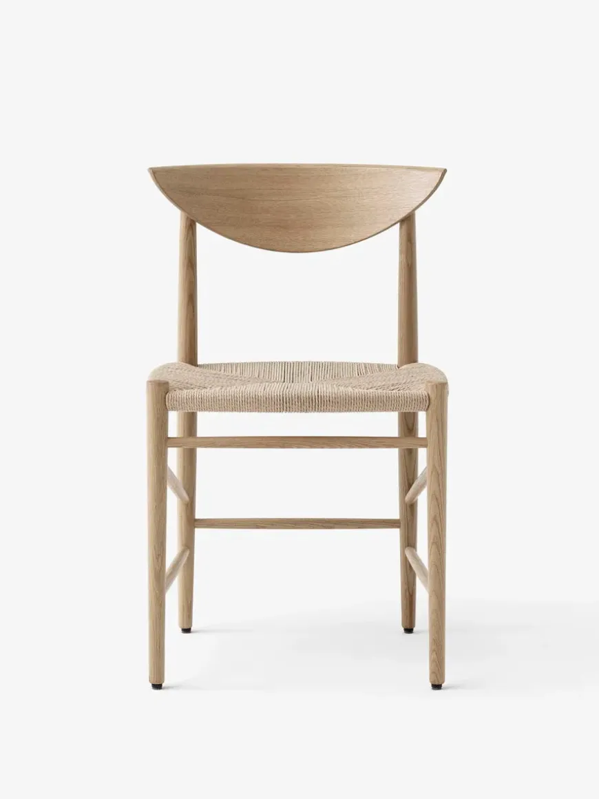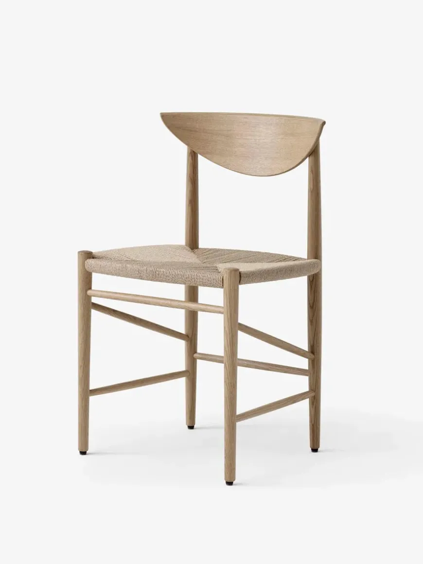 Den ikoniske Drawn HM3 fra &Tradition bringer varme og stoflighed til spiseområdet. Tegnet i 1956 af Hvidt og Mølgaard og genintroduceret med samme respekt for håndværket, forener stolen massivt træ, formpresset ryglæn og et håndvævet sæde i naturpapirledning. De bløde kurver og den lune papirflet giver en indbydende komfort der holder til hverdagsbrug og lange middage. HM3 er den rene spisebordsstol i serien uden armlæn med et let og ærligt udtryk der matcher både moderne og klassiske interiører. Vælg mellem olieret eg, olieret valnød eller sortlakeret eg og tilføj eventuelt den skræddersyede læderpude for ekstra blødhed. Materialerne er nøje udvalgt og udførelsen præcis så stolen patinerer smukt og får karakter over tid.