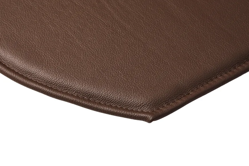 Hynde i brunt slidstærkt læder, der passer til Arne Jacobsens populære og ikoniske 7’er stol. Denne hynde er i en brun læder, der har fået overfladebehandling, således den er let at holde og samtidig enormt slidstærk. Overfladebehandlingen af læderet gør, at hynden let kan tørres over med en fugtig klud og at hynden ikke behøver behandling i form af læderfedt. Hynden er lavet specifikt til 3107 7’er stolen. Brug hynden på Syver stolen for at øge komforten. Jacobsen Plus har i samarbejde med en lokal leverandør af lædervarer fået fremstillet hynderne. Jacobsen Plus’ hynder til Syver-stolen kommer også i en overfladebehandlet sort læder og cognac læder.