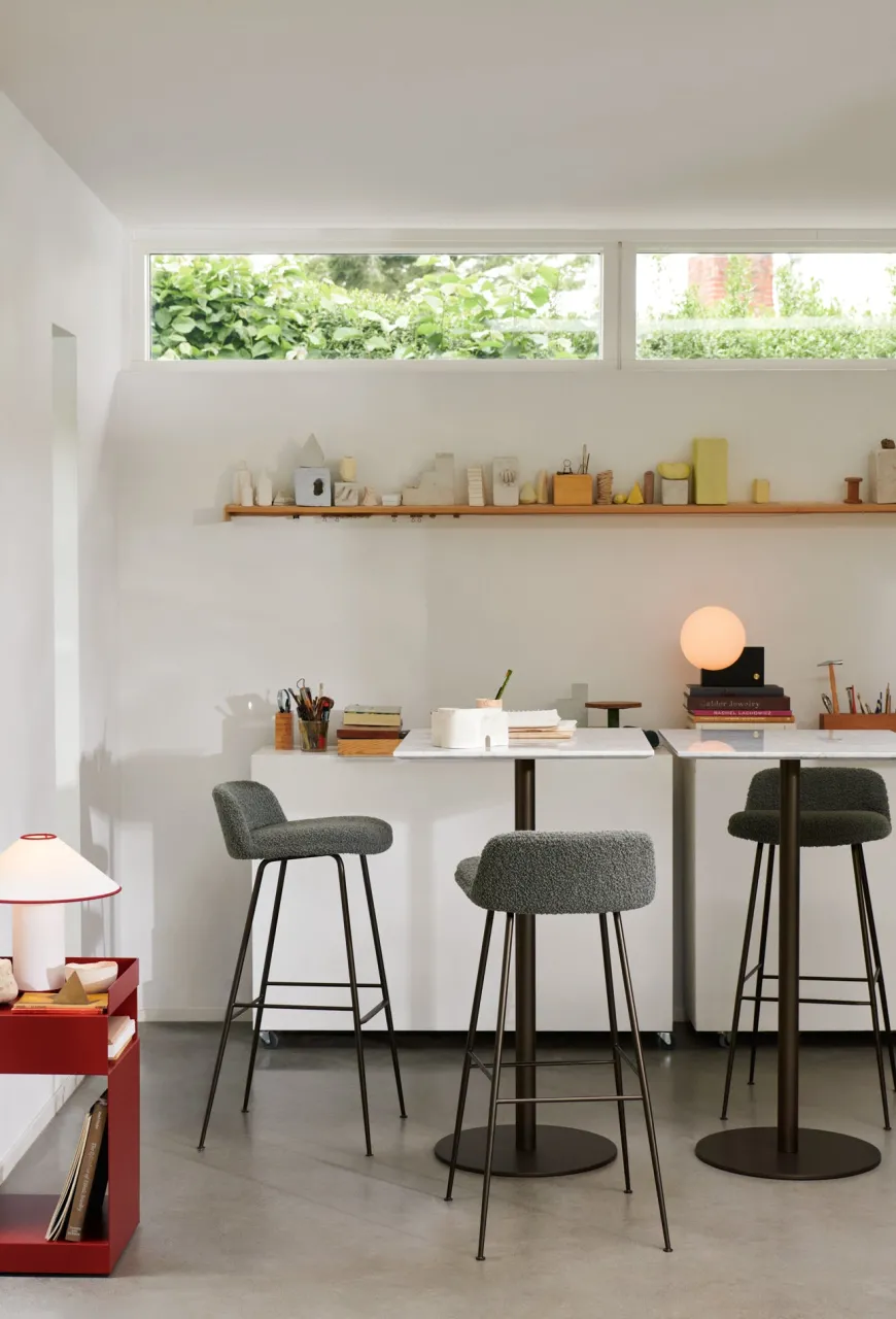 Det elegante In Between SK21 barbord er skabt af den finsk-svenske designer Sami Kallio for &Tradition og udtrykker en smuk balance mellem tidløs minimalisme og naturlige materialer. Med sit enkle formsprog, den runde bordplade og den slanke centralsokkel fungerer bordet både som et praktisk samlingspunkt og som et raffineret møbel, der kan indgå i mange forskellige indretninger.