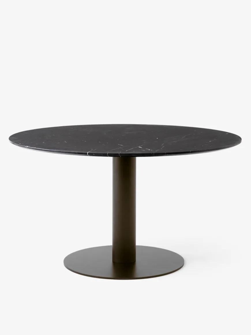 Stellet i bronzed pulverlakeret stål giver bordet et eksklusivt og raffineret udtryk, der tilfører varme og karakter til indretningen. Den enkle centralsøjle fremhæver bordpladens naturlige skønhed og sikrer samtidig optimal benplads for alle omkring bordet.