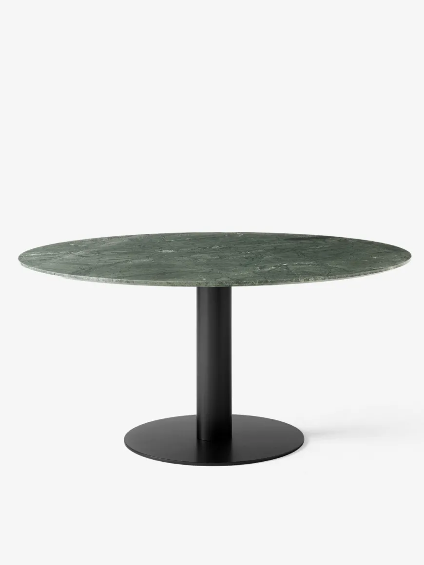 Med en diameter på Ø150 cm giver bordet generøs plads uden at virke dominerende, og den standardiserede højde på 73 cm gør det komfortabelt til daglig brug. Hver marmortop er et naturprodukt med sine egne årer og farvespil, hvilket gør hvert bord helt unikt.