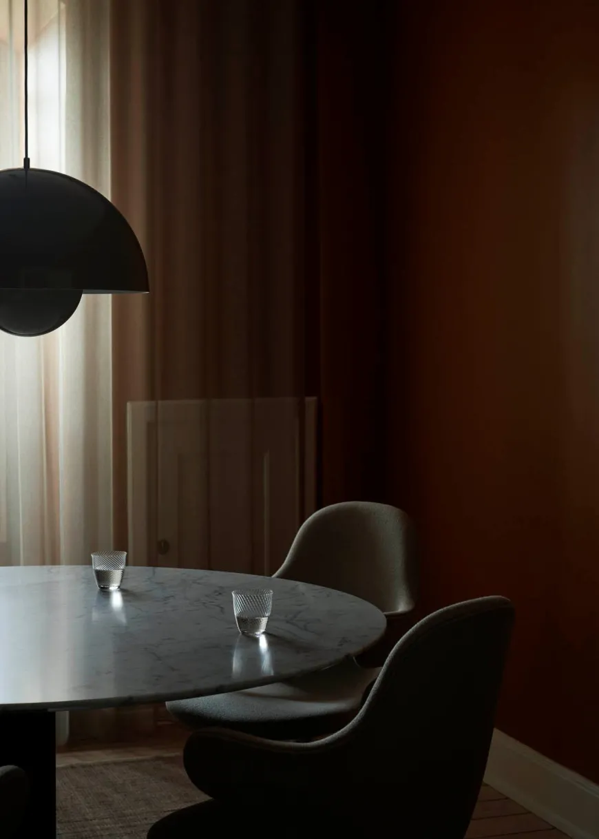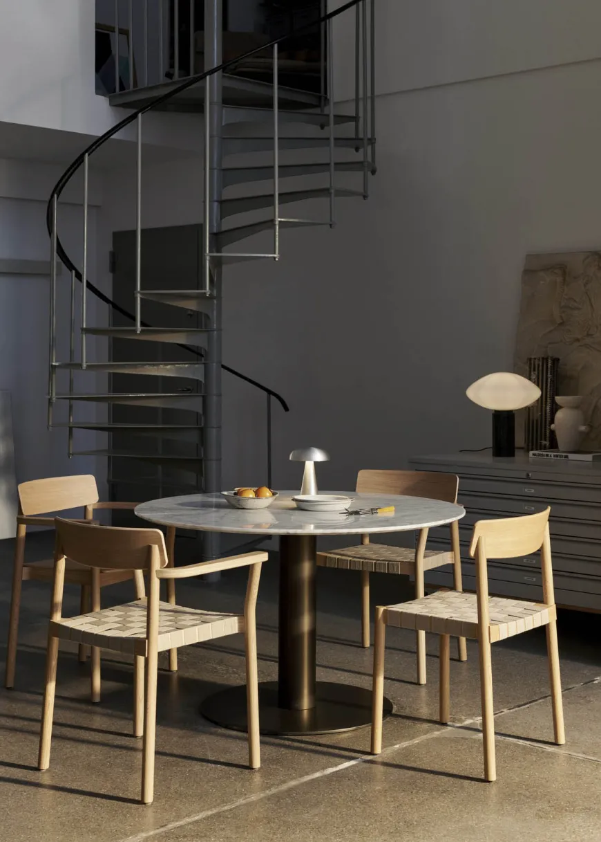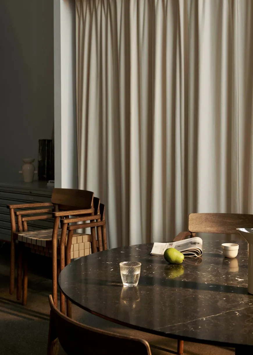 In Between SK20 er et elegant rundt spisebord designet af den finske designer Sami Kallio for &Tradition. Bordet kombinerer klassisk håndværk med moderne linjer og er skabt til at samle mennesker i en atmosfære af nærvær og samtale. Den runde form inviterer til dialog og gør bordet oplagt til både hjemlige middage og sociale sammenkomster.