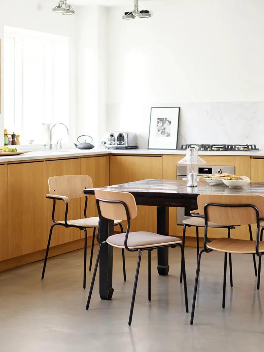 J182 Holmen spisebordsstolen er stabelbar og dermed enormt brugbar, da den er en oplagt “ekstra” stol til gæster eller komsammener.