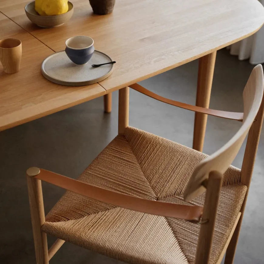 Materiale: FSC-certificeret eg, natur flet / papirsnor, kernelæder