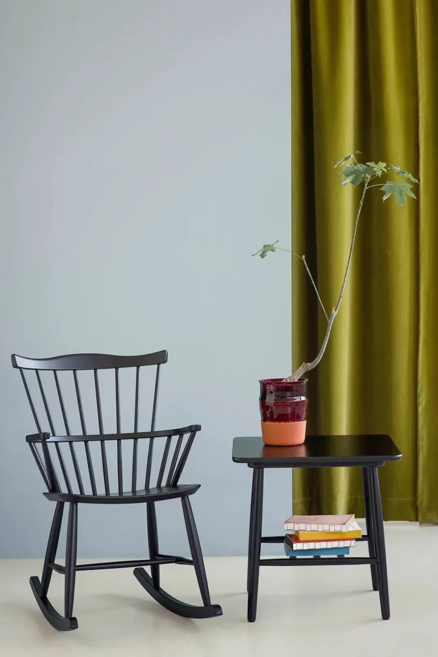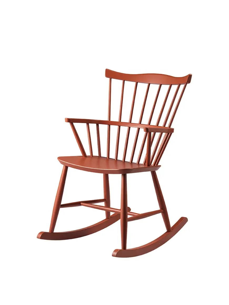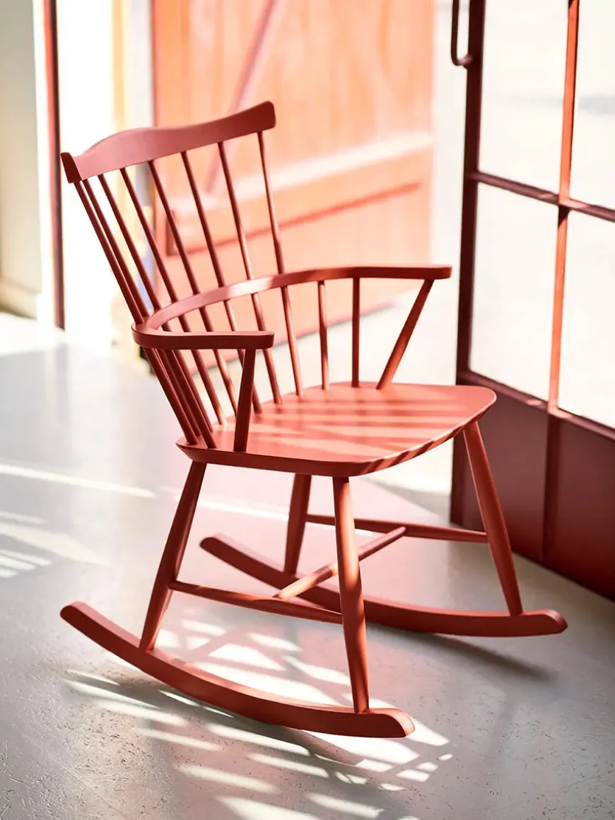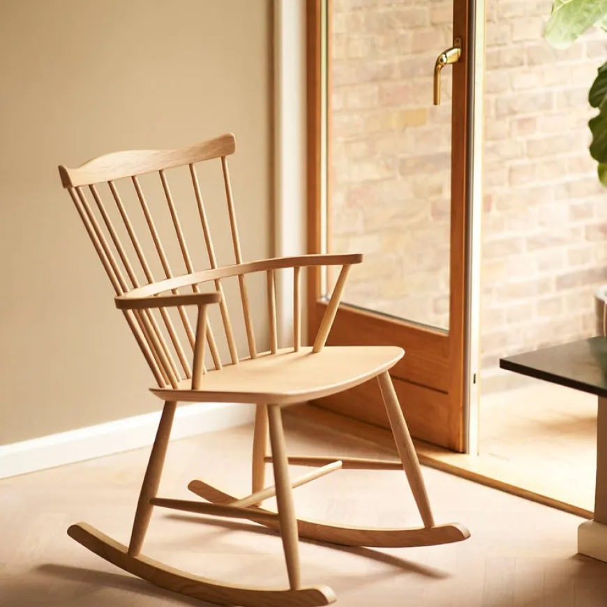 J52G gyngestolen fra FDB Møbler er designet af Børge Mogensen og indbyder til ren afslapning. FDB gyngestolen har et sæde af formpresset bøgetræ samt et understel af massiv bøg. Det benyttede træ laves i flere farver og er FSC-certificeret fra europæiske skove.