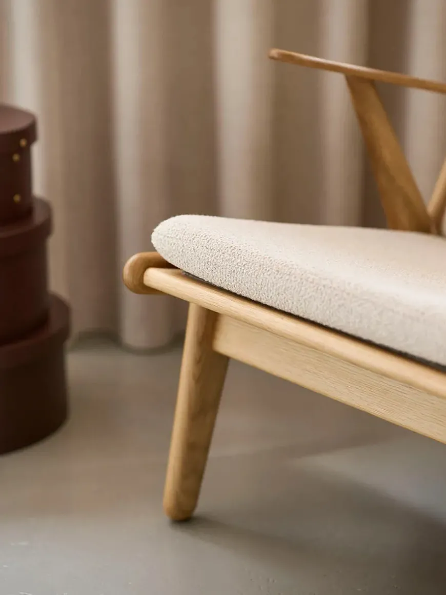 J53 lænestolen har været ude af produktion i mange år, men i 2024 relancerer FDB den smukke loungestol.