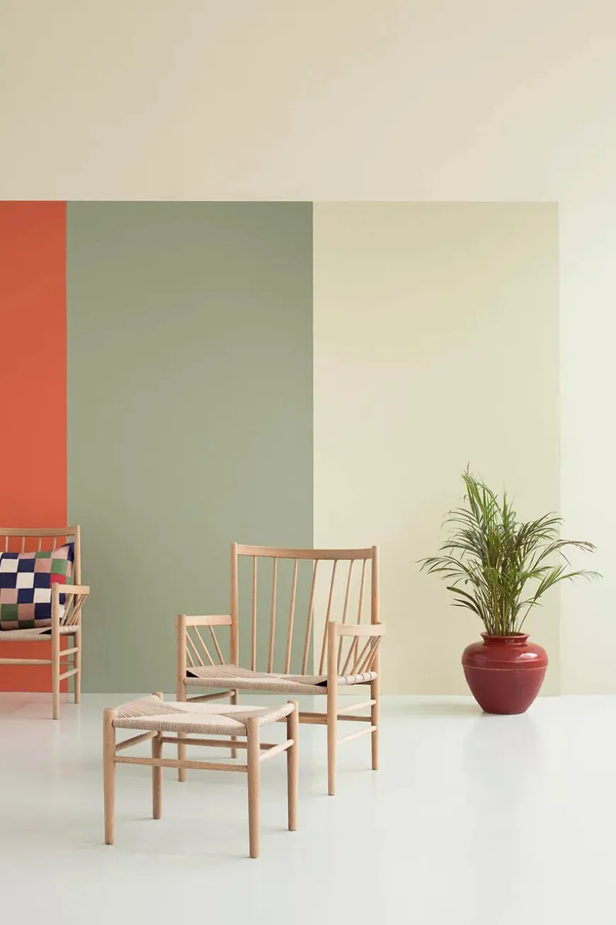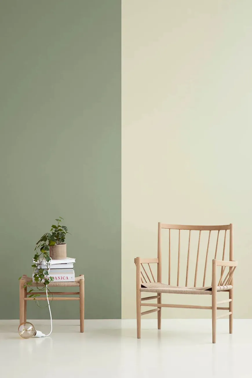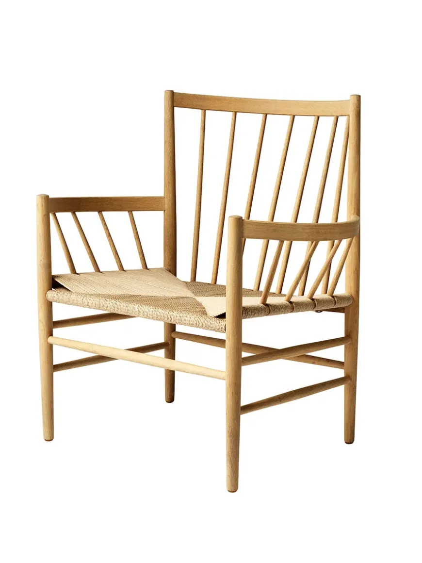 Loungestolen J82 er lavet i massiv eg eller bøg med håndflettet sæde i natur eller sort.