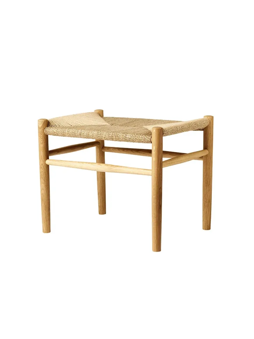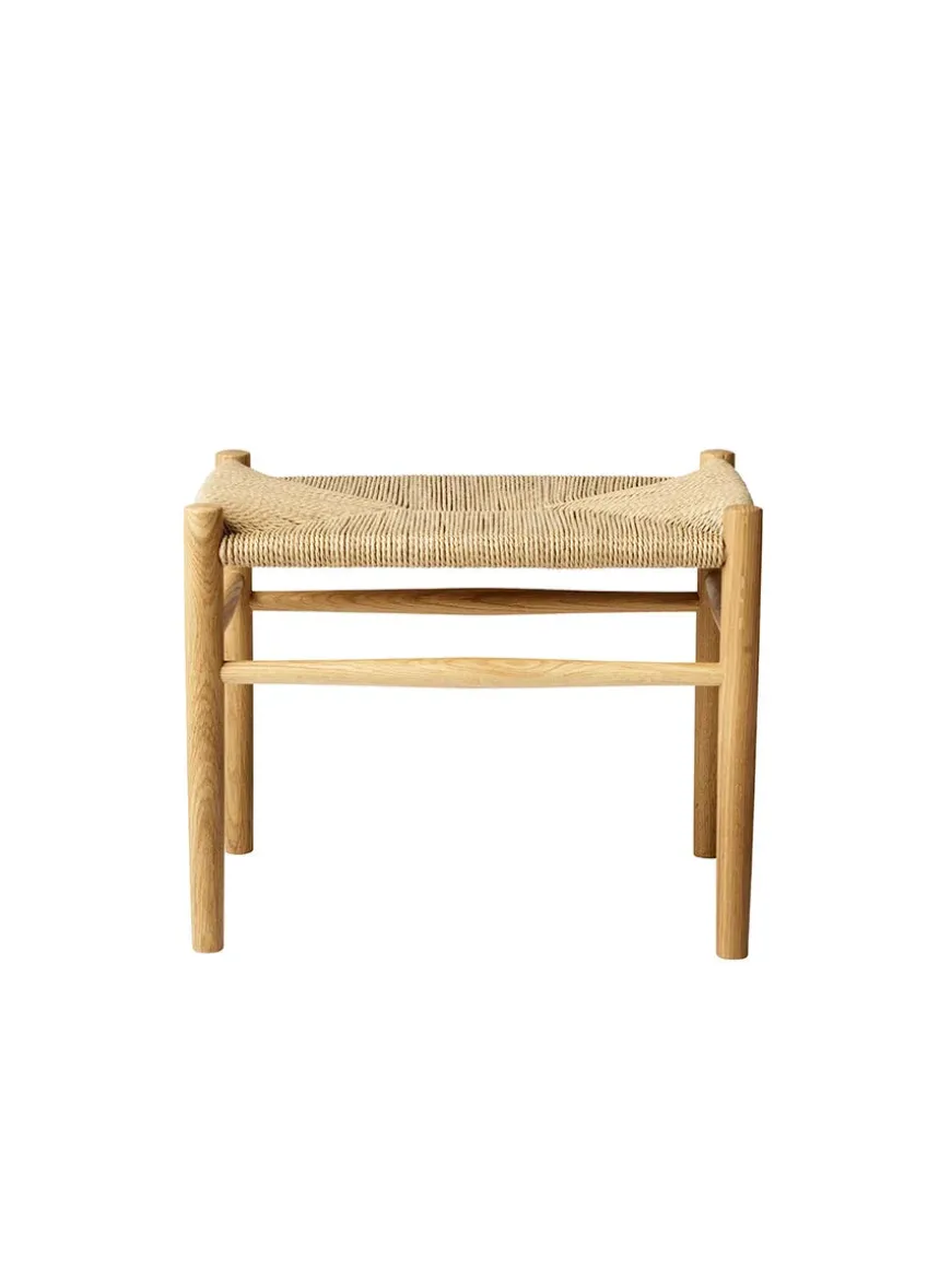 J83 skamlen er lavet i massiv eg eller malet bøgetræ med fletsæde.