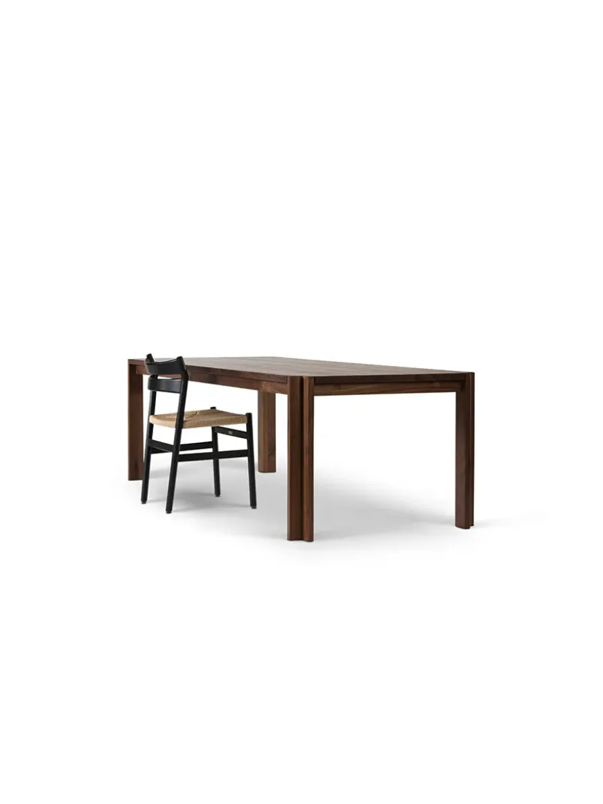 Spisebordet fra DK3 laves i to træsorter; vild eg og vild valnød. Vælg bordet i flere forskellige størrelser.