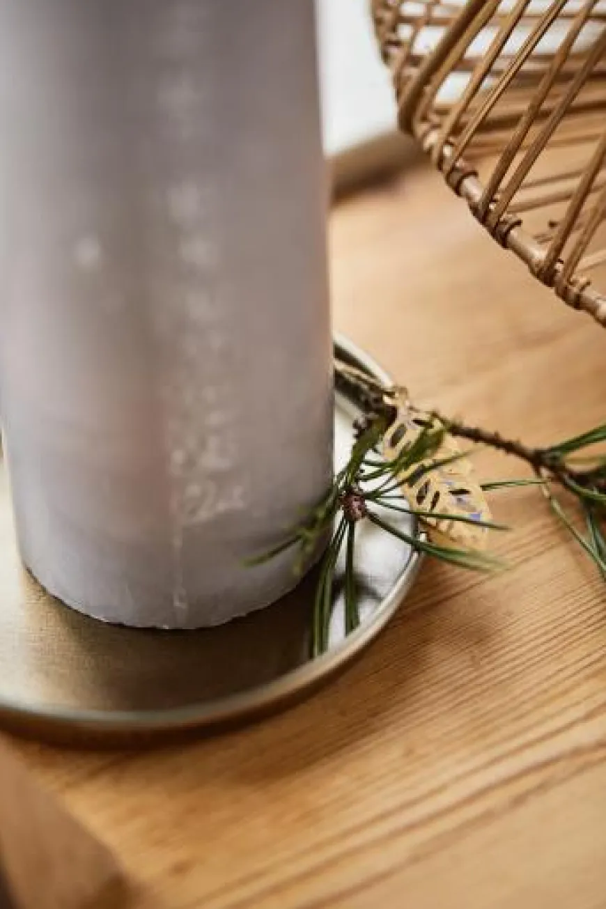 Vælg mellem den rolige nuance ash grey eller den varme honey, begge farver, der smukt komplementerer både moderne og traditionelle juledekorationer. Et kvalitetslys fra Ib Laursen, der forener bæredygtighed, håndværk og julens magiske forventning.