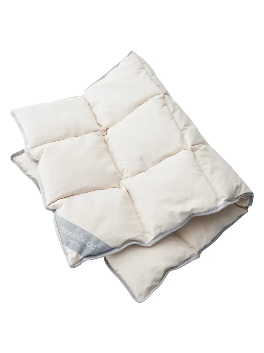 Dynen er ideel at bruge i slyngevuggen, barnevognen eller tremmesengen.