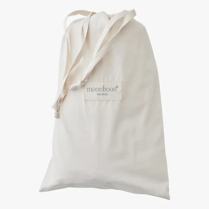 Der medfølger en praktisk mulepose og et naturfarvet økologisk betræk til dynen.