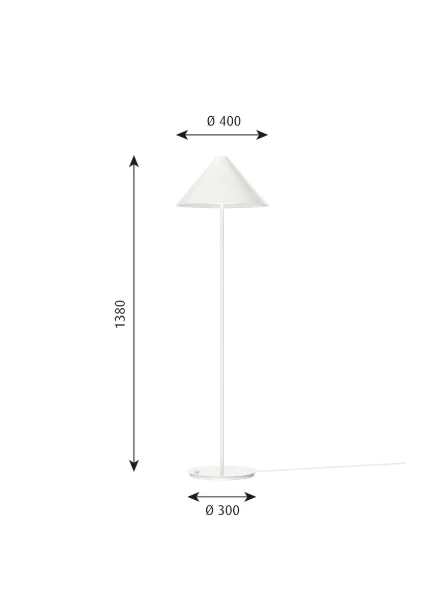 Keglen kollektionen er udvidet med blandt andet denne gulvlampe. Keglen gulvlampe karakteristiske koniske skærm har en indbygget buet afskærmning. Det giver et smukt og blændfrit nedadrettet lys. Der udsendes også et blidt, stemningsskabende lys opad gennem en diskret åbning i toppen af skærmen.