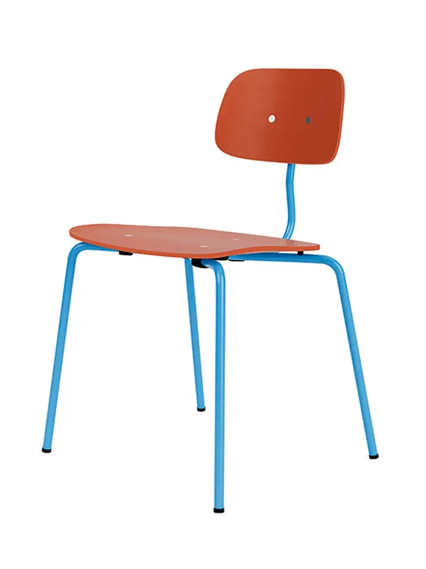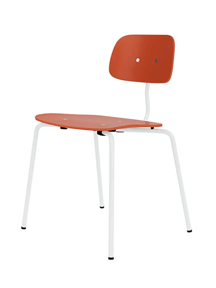 Denne variant af Kevi 2060 stolen er i Hokkaido, med mulighed for at vælge stellet i 9 forskellige farver. Den stabelbare spisestol er designet af Jørgen Rasmussen og fås med sæde og ryg i eg eller lakeret. Her i den lakerede version.