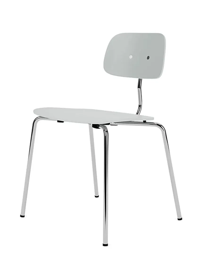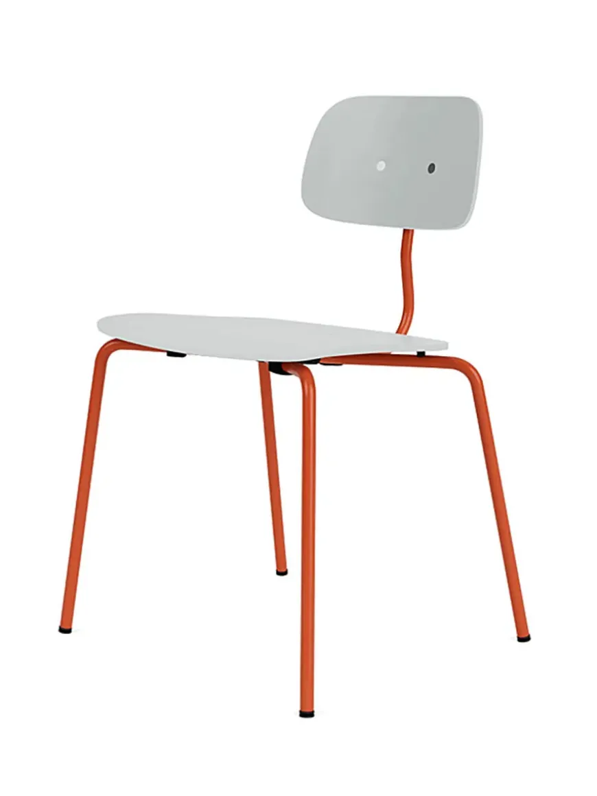 Denne variant af Kevi 2060 stolen er i Oyster, med mulighed for at vælge stellet i 9 forskellige farver. Den stabelbare spisestol er designet af Jørgen Rasmussen og fås med sæde og ryg i eg eller lakeret. Her i den lakerede version.