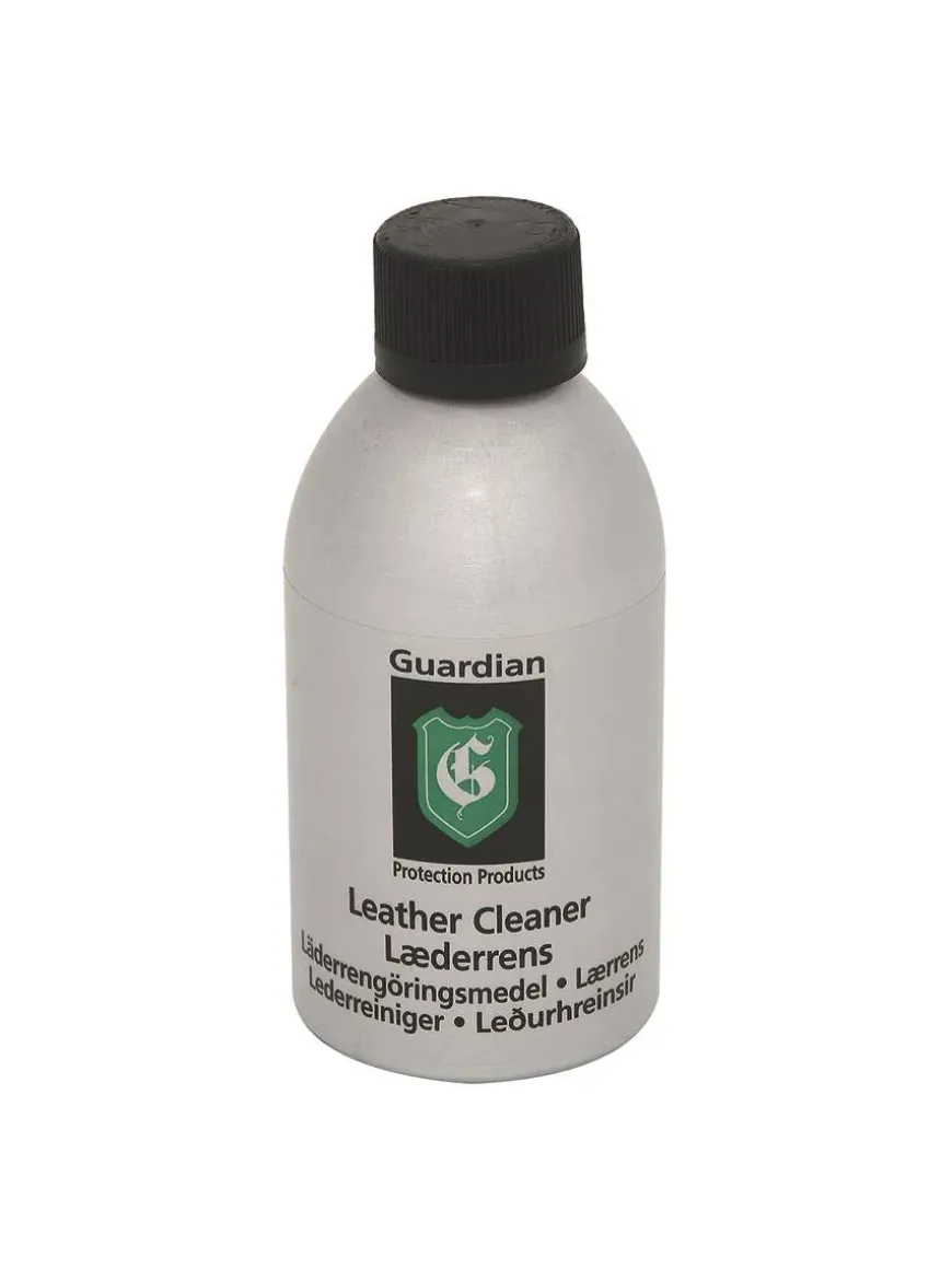 Anvend svamp eller fnugfri klud, og vask med masserende cirkelbevægelser. Det er vigtigt at læderet bliver jævnt vådt, da farveskjolder ellers kan forekomme. Rens derfor aldrig en lille del af læderet, men hele hynden/møblet. Efter tørretiden på ca. 2 timer kan behandlingen evt. gentages. Det anbefales at rense læderet 8-10 gange om året. Læderet bør ligeledes behandles med Guardian lædercreme 4-6 gange om året (og efter hver rens).