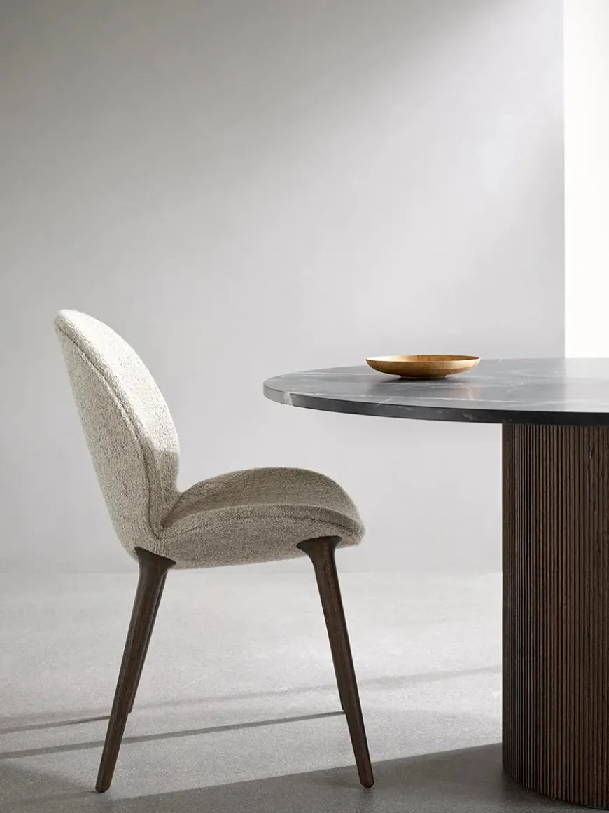 Kombiner Logde stolen med det smukke cabin marmor spisebord fra Vipp, for at skabe kontrakt mellem det tunge og elegante.