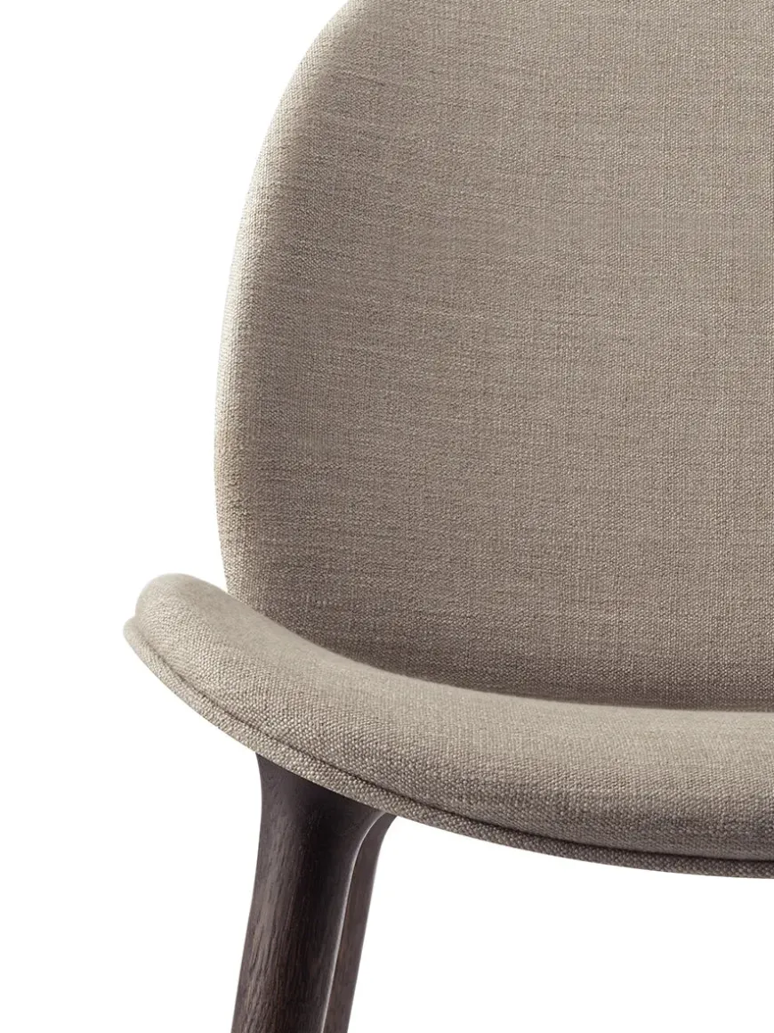 Spisebordsstolen har en polstret skal og ben i egetræ. Den polstret skal er blødt polstret, hvilket gør det behageligt at sidde en helt aften omkring spisebordet.
