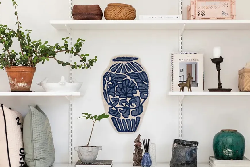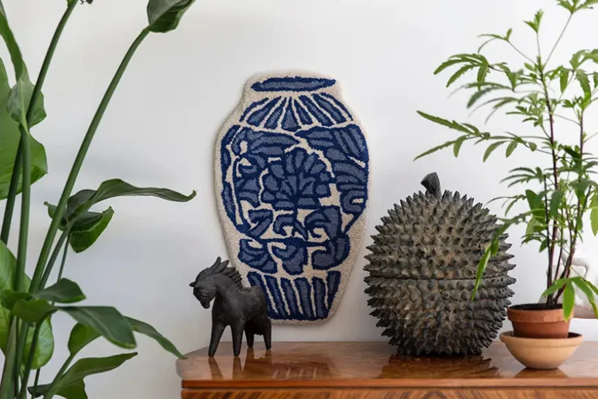 Ming Vase Rug er et håndlavet vægtæppe i 100% uld. Brug det bløde element som et ekstra pift på din billedvæg.