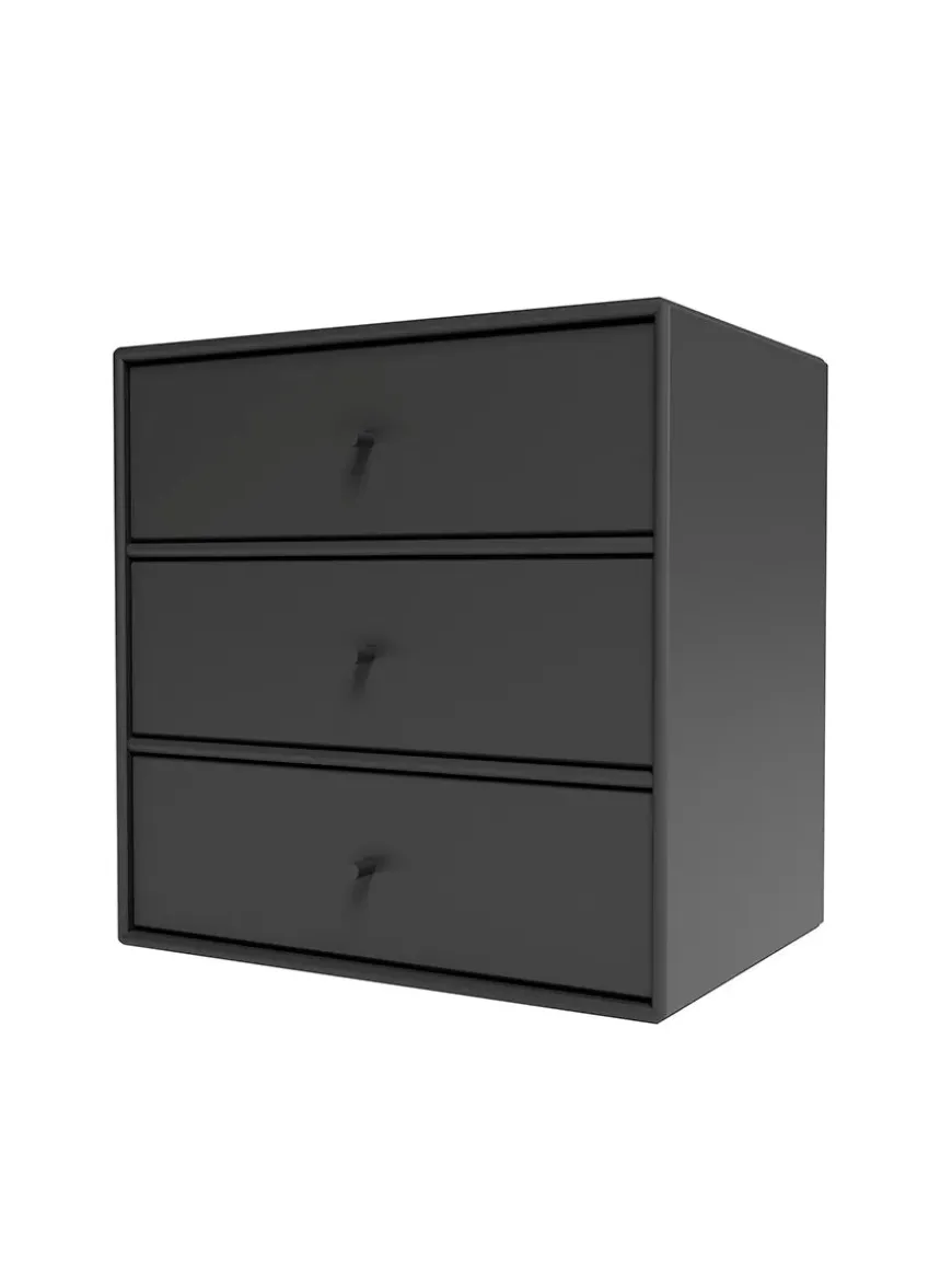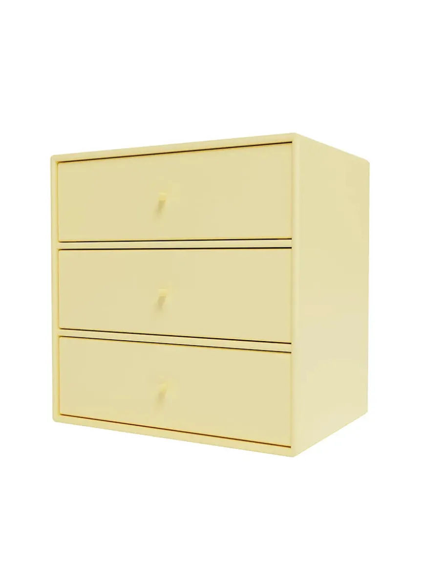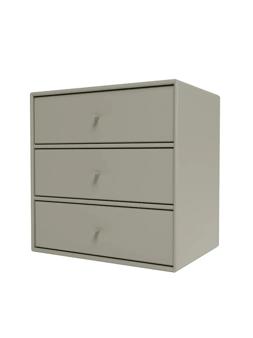 Montana Mini er en serie med mindre opbevaringsmoduler, som laves i 10 forskellige farver. Her finder du modulet med tre skuffer, som giver gode muligheder for opbevaring af diverse ting, eksempelvis i soveværelset, entréen eller stuen. Serien laves af 8 millimeter MDF modsat de 12 millimeter, som resten af Montanas reoler. Ophæng medfølger.