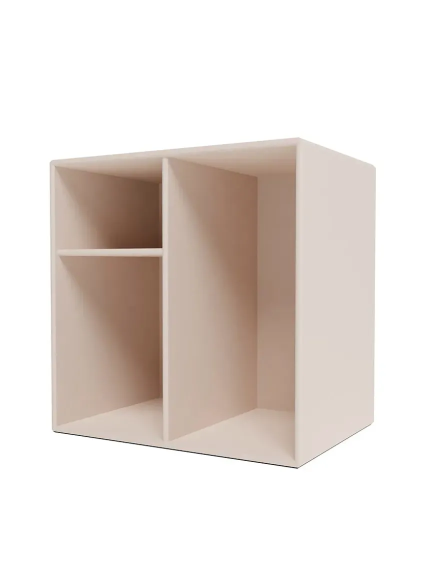 Montana Mini er en serie med mindre opbevaringsmoduler, som laves i 10 forskellige farver. Dette modul har monteret en skillevæg samt en hylde. Opstillingen er fast, og hylderne kan ikke flyttes på. Serien laves af 8 millimeter MDF modsat de 12 millimeter, som resten af Montanas reoler. Ophæng medfølger.