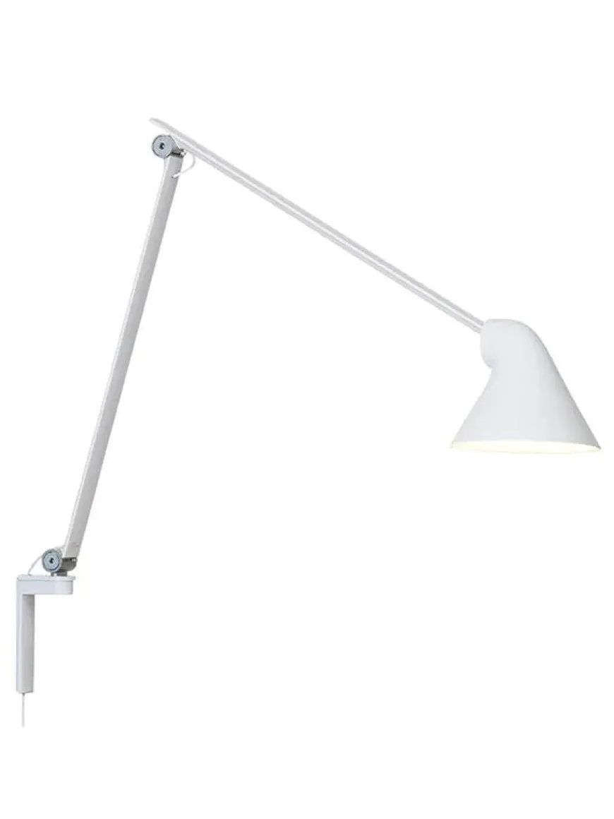 NJP Bordlampe fra 2015 følges op med en gulvlampe og to væglamper. Væglampen kommer i to udgaver – en med kort og en med lang arm. Lampernes ’arme’ giver stor bevægelighed og mange trinløse indstillingsmuligheder.