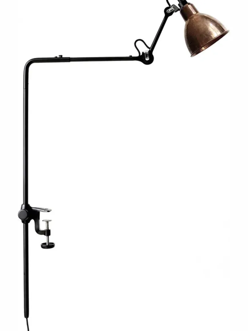 Nr. 226 bordlampe fra Lampe Gras. Perfekt læselampe til bogreoler med et fastspændingssystem til hylder op til 53mm.