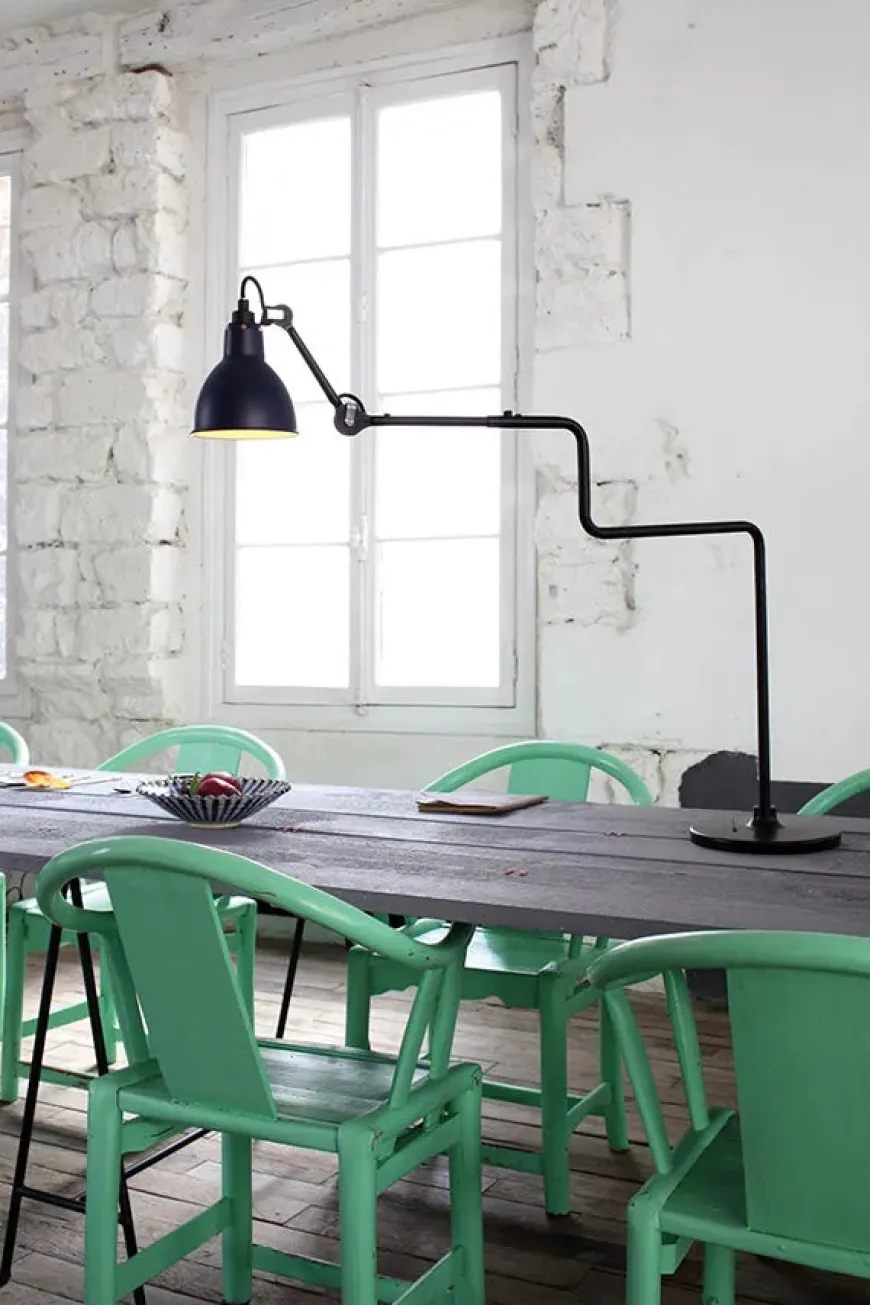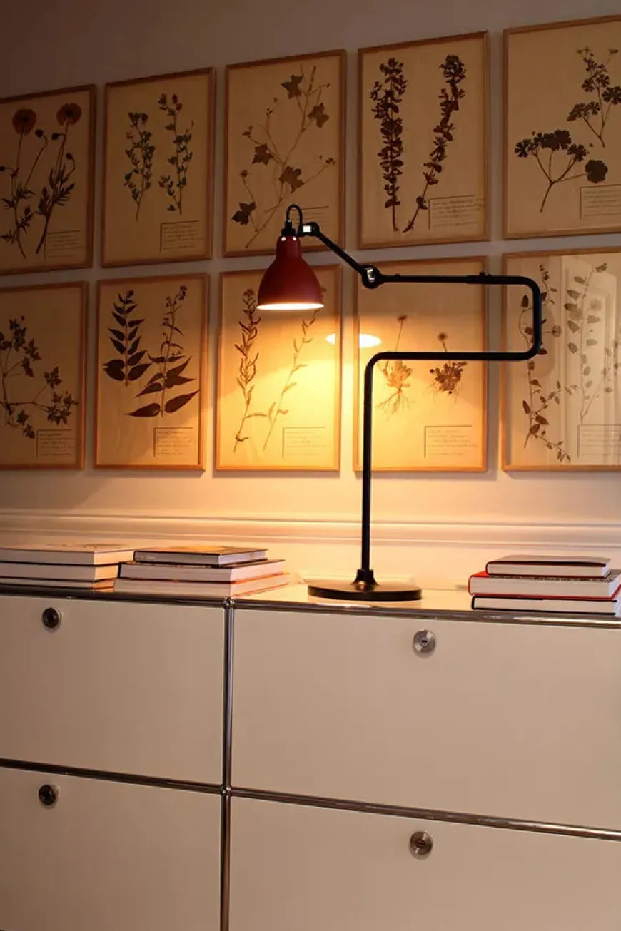 Nr. 317 bordlampe fra Lampe Gras Bordlampen har en træbund og passer perfekt på et skrivebord, et lille sidebord eller et lavt bord.