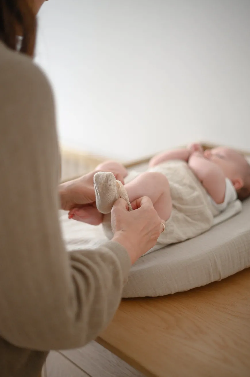 Denne ovale puslepude har en organisk og blød form med høje kanter. Den er lavet af det blødeste skum og har et aftageligt vaskbart betræk. Betrækket er lavet af økologisk bomuld og er coatet så det kan modstå vand og snavs. Med den ovale form og de bløde kanter, giver denne puslepude et organisk og blødt udtryk samtidig med, at barnet ligger på et blødt underlag af skum. Med andre ord får du både sikkerhed, komfort og æstetik i ét.