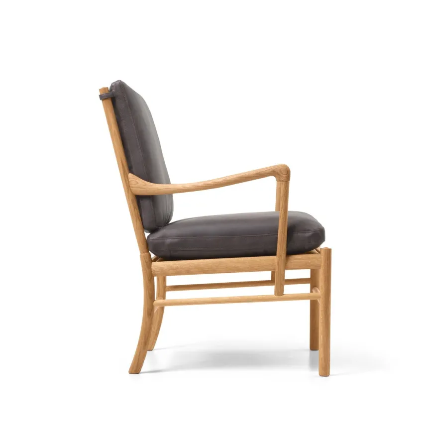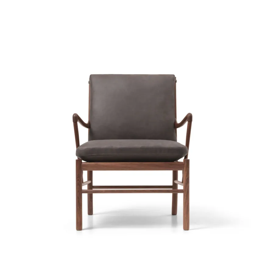 OW149 Colonial lænestol i olieret valnød med TERRA®-læder hylder Ole Wanschers raffinerede minimalisme. Den slanke træramme og de let svungne armlæn giver et luftigt udtryk, mens de bløde, formstabile puder inviterer til ro. Det håndflettede sæde i rørflet understreger den klassiske lethed og kan udskiftes ved behov – et gennemført møbel, der kombinerer holdbarhed, komfort og ikonisk dansk håndværk. Match gerne med OW149F fodskammel for fuld loungestemning.