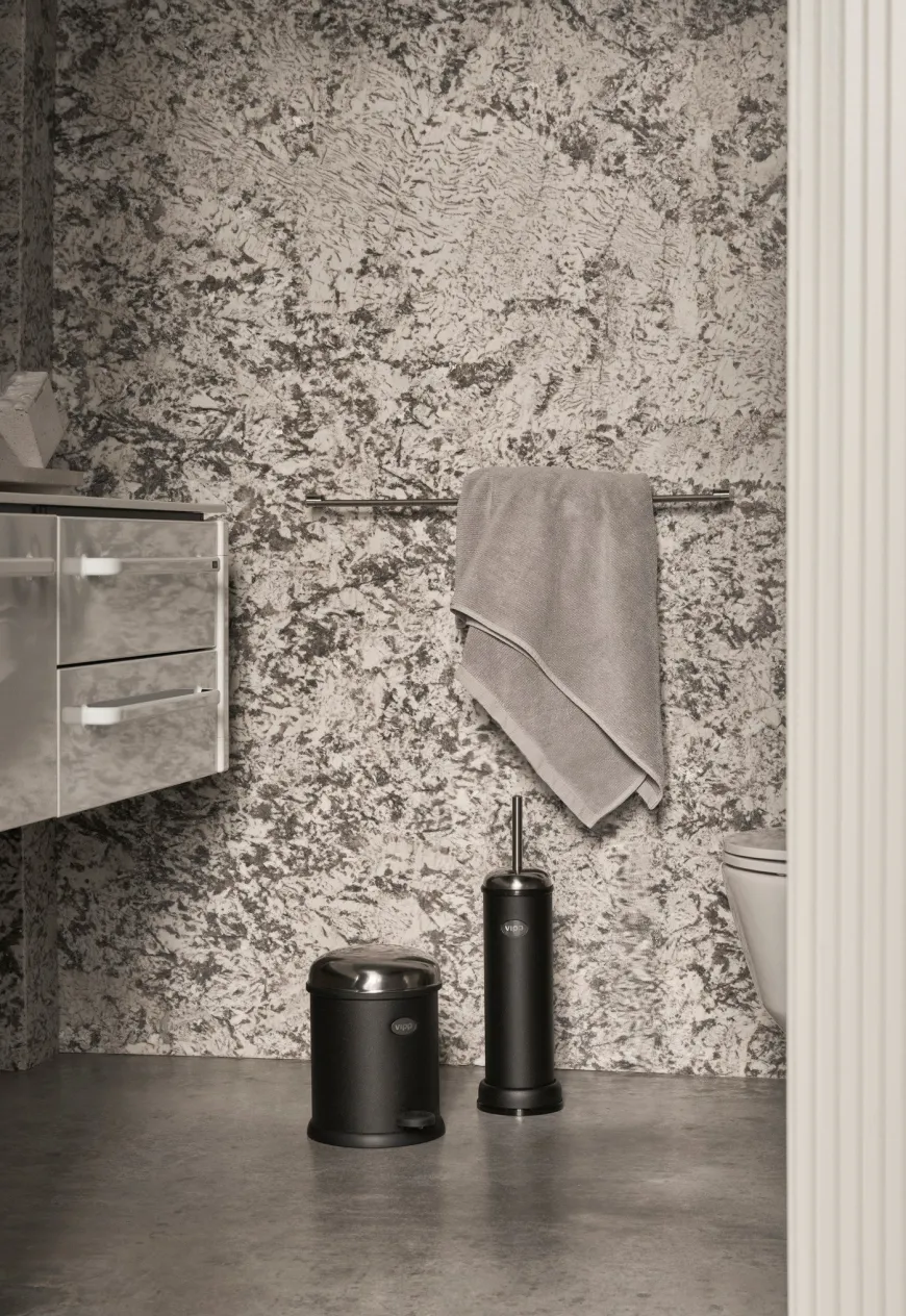 Vipp12 pedalspanden er den mindste Vipp pedal spand og er ideel til små badeværelser.