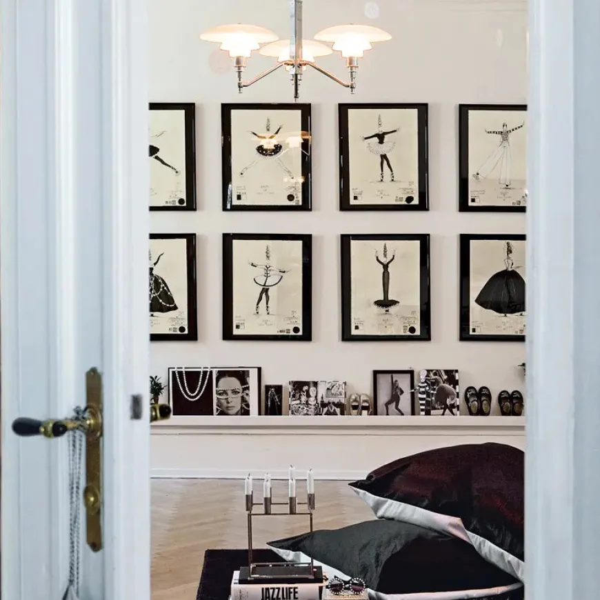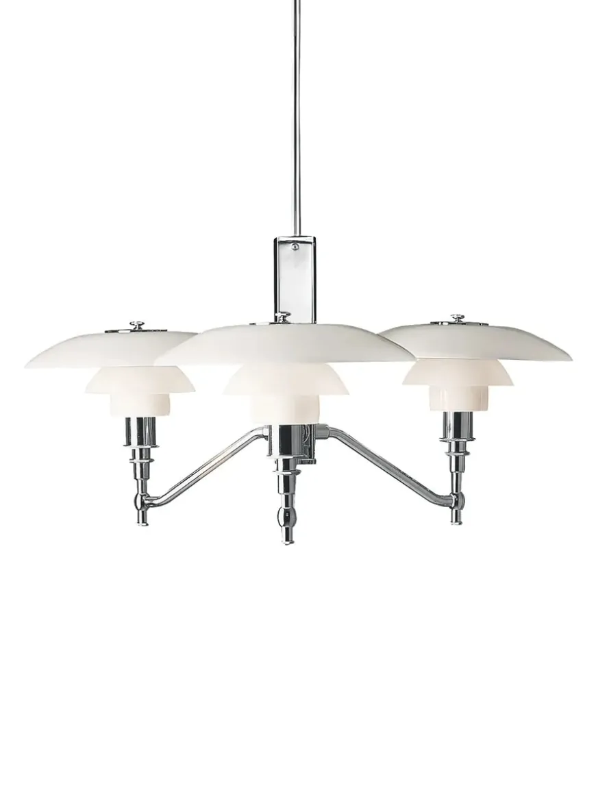 Materiale: Skærme i mundblæst, hvidt, opalt glas med stel og fatningshus i højglansforkromet messing.