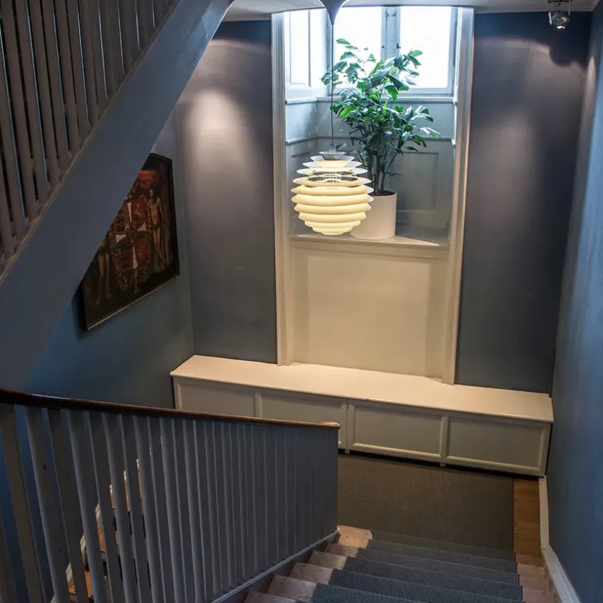 PH Louvre (tidligere kaldet PH Kugle) blev designet til Adventistkirken i Skodsborg tilbage i 1957. Poul Henningsen blev bedt om at designe en dekorativ pendel til kirken. Han besluttede at fremstille denne globeformede pendel, som består af 13 lameller monteret på 3 ben.