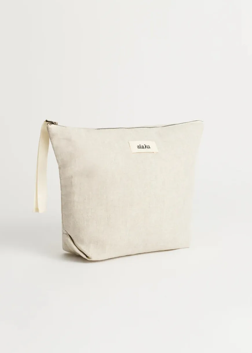 Aiayu toilettaske i økologisk Chetna bomuld med lynlås og praktisk indvendig strop til at hænge den op.