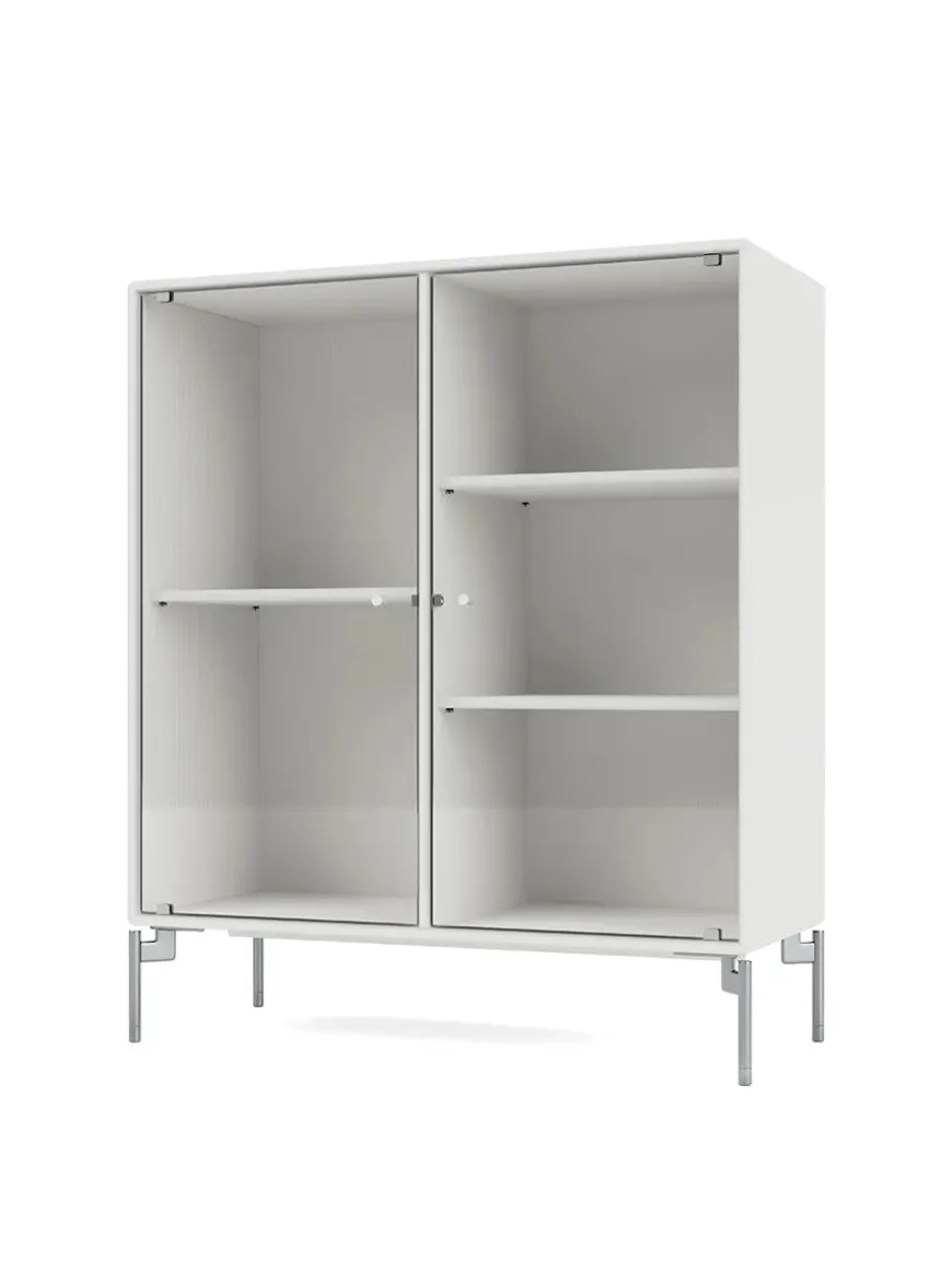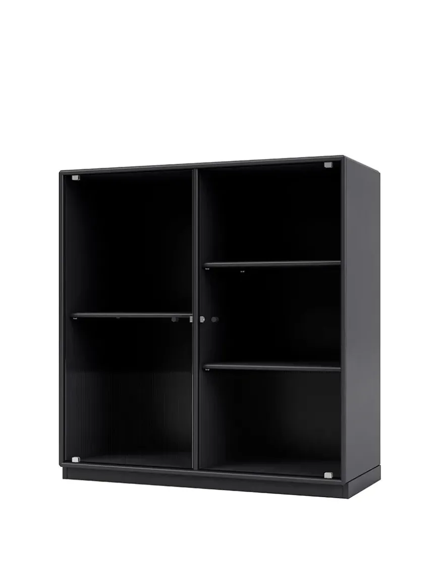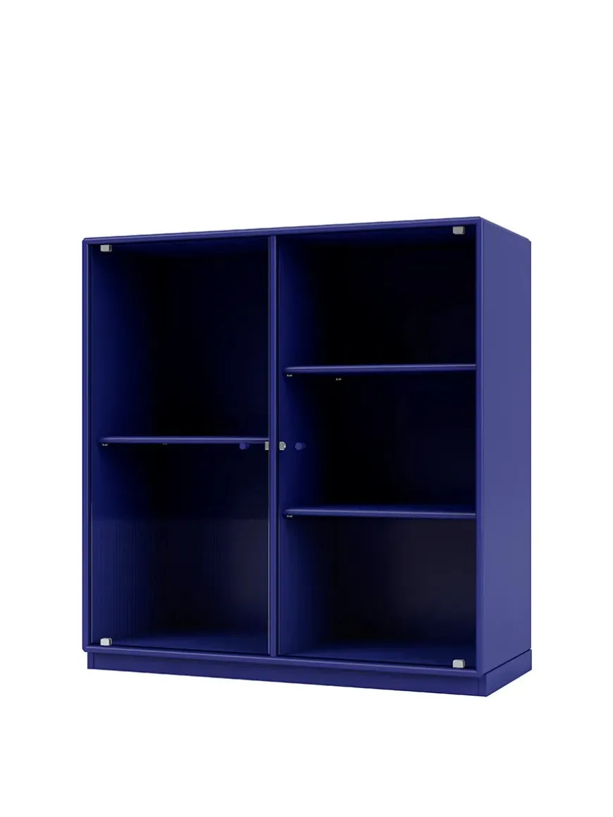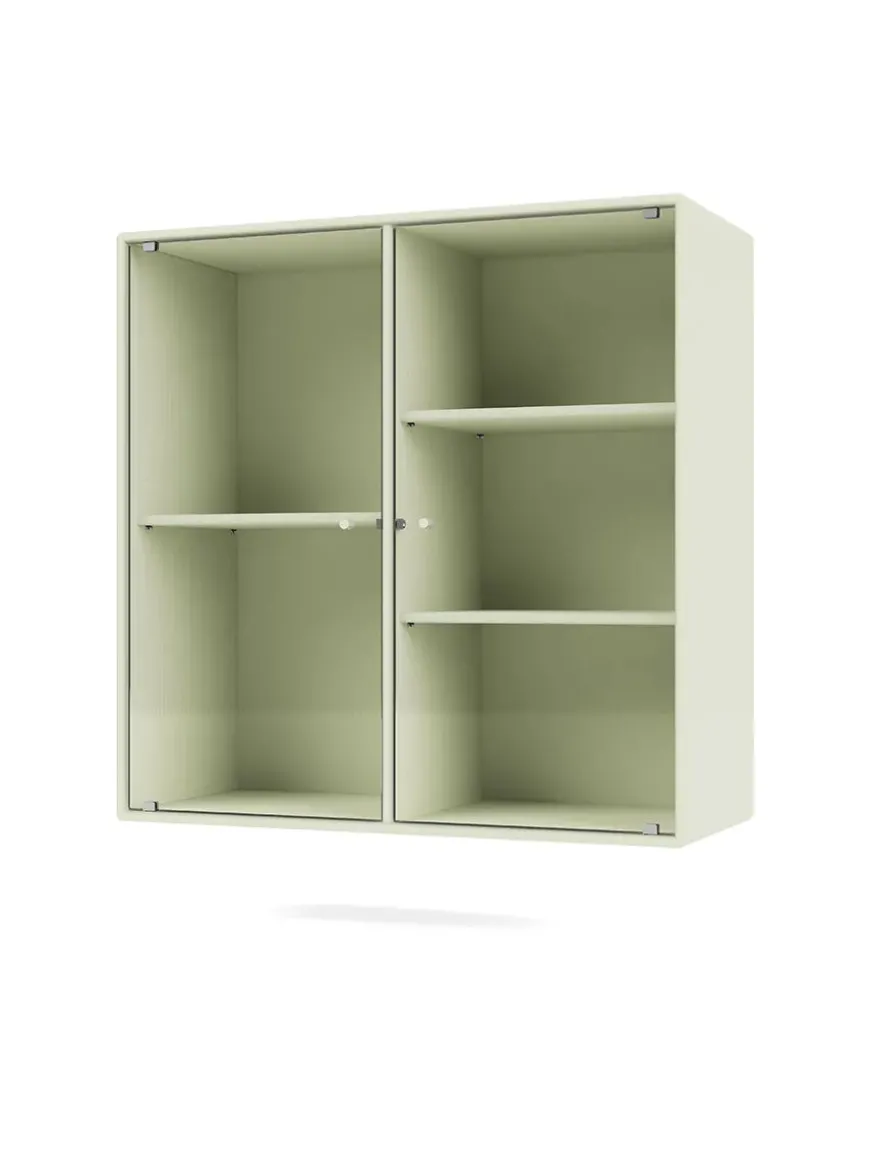 Vær opmærksom på at glaslågerne er i matteret, rillet glas Ripple II er et vitrineskab, der kan rumme dine finere ejendele, som du ikke nødvendigvis ønsker at gemme væk. Skabet har en perforeret glaslåge med lakerede greb. Ripple II skabet er certificeret med det danske indeklimamærke og det officielle EU Ecolabel, hvilket gør det til et sikkert valg for dig, dine omgivelser og miljøet. Skabet kommer i Montanas poetiske farvepalet med 41 nuancer, som er udarbejdet af danske Margrethe Odgaard.