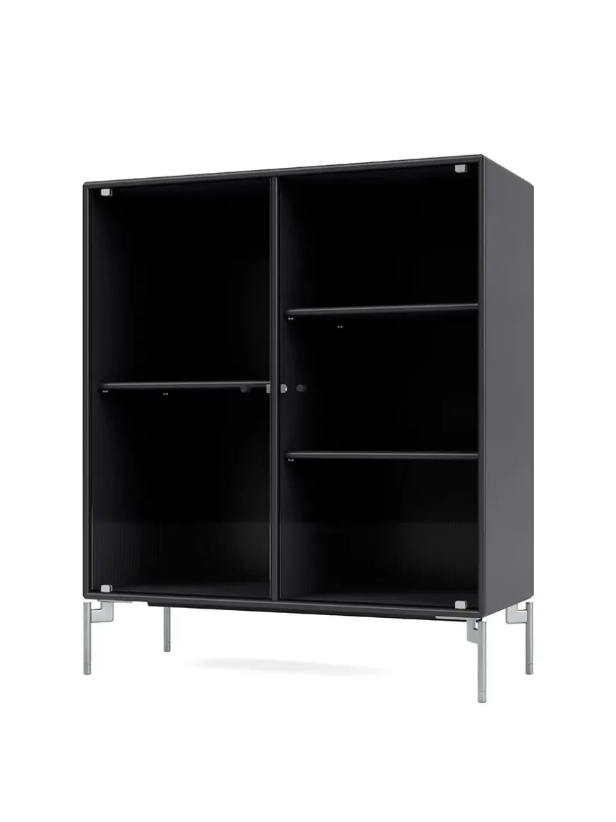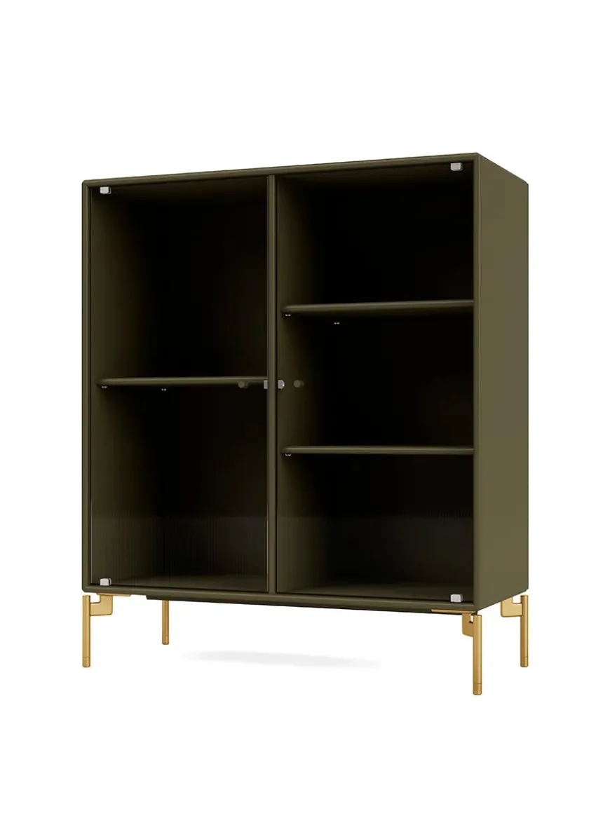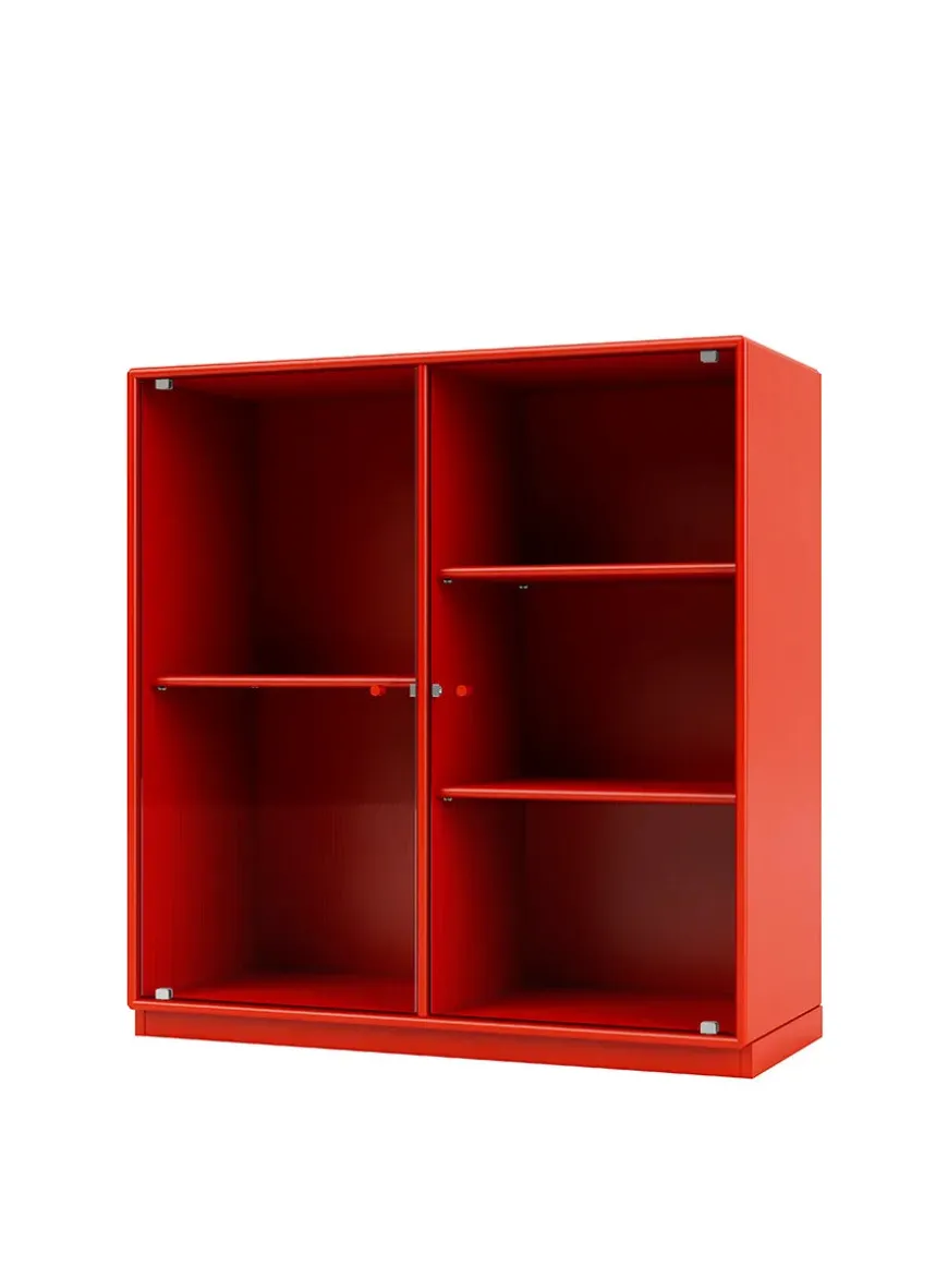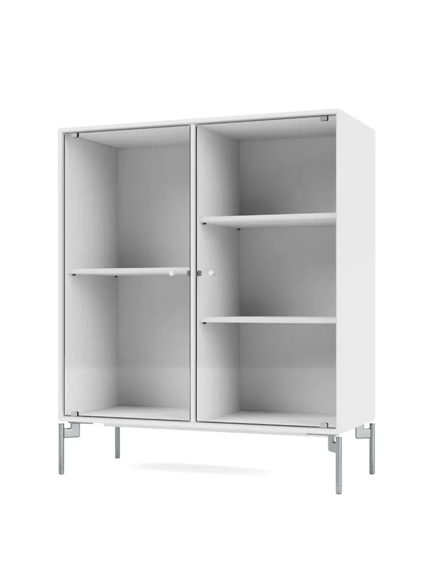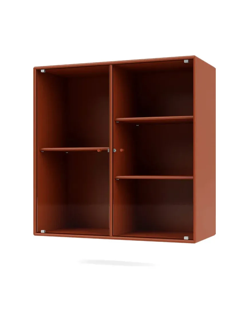 Vær opmærksom på at glaslågerne er i matteret, rillet glas Ripple II er et vitrineskab, der kan rumme dine finere ejendele, som du ikke nødvendigvis ønsker at gemme væk. Skabet har en perforeret glaslåge med lakerede greb. Ripple II skabet er certificeret med det danske indeklimamærke og det officielle EU Ecolabel, hvilket gør det til et sikkert valg for dig, dine omgivelser og miljøet. Skabet kommer i Montanas poetiske farvepalet med 41 nuancer, som er udarbejdet af danske Margrethe Odgaard.