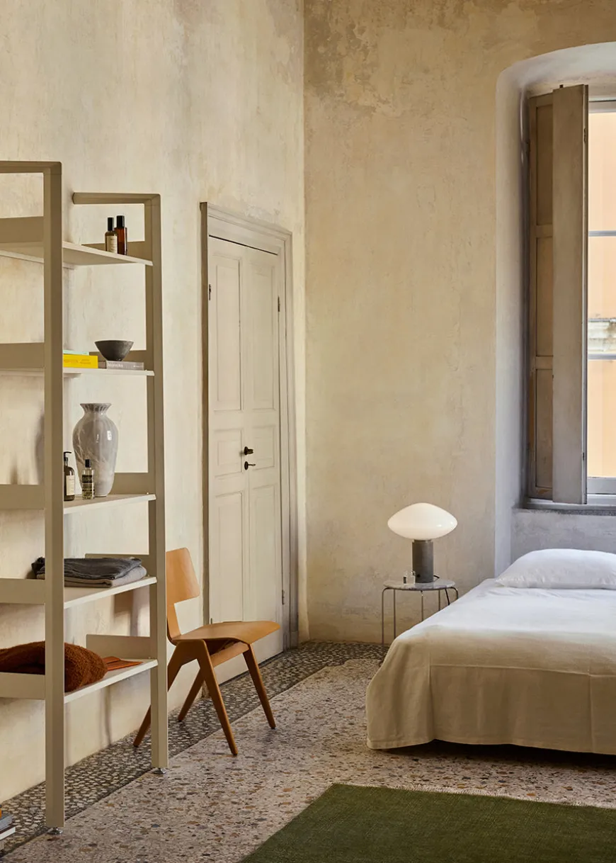 Rombe-serien fås i flere faste konfigurationer og kan udvides med ekstra sektioner og hylder, så den let tilpasses rummets funktion og forandringer over tid. Det raffinerede design balancerer æstetik og funktionalitet og skaber visuel ro, samtidig med at det tilbyder generøs opbevaringsplads.