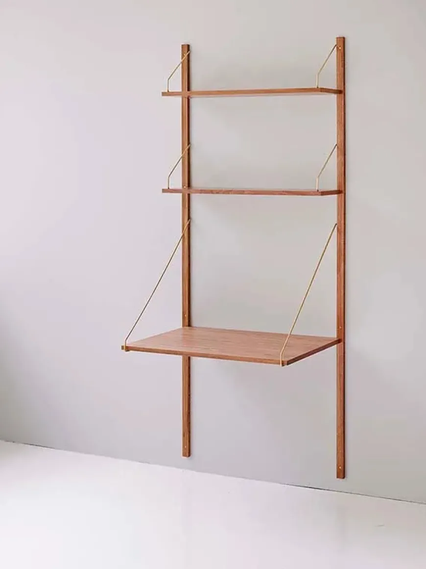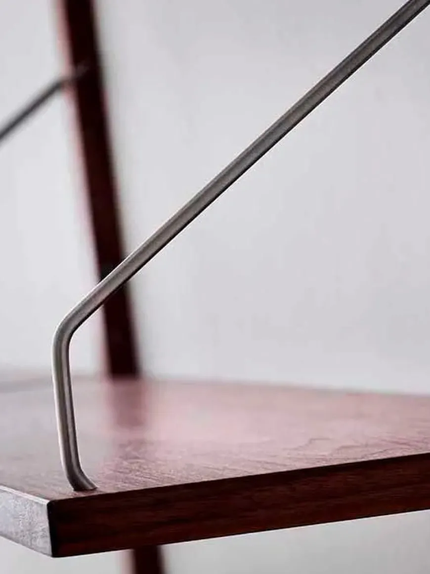 Reolen fås i materialerne sortbejdset eg, eg, røget eg og valnød med bøjler i messing eller rustfrit stål.