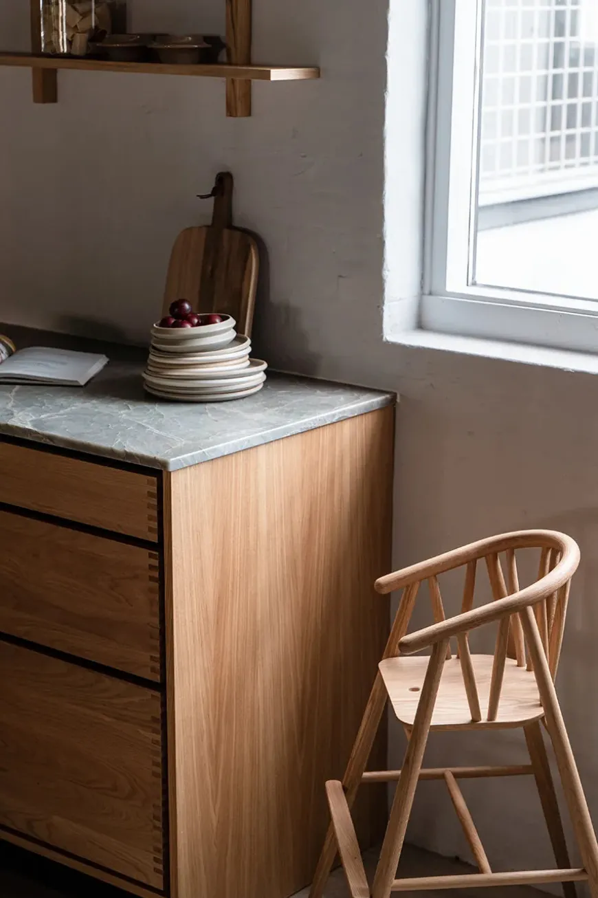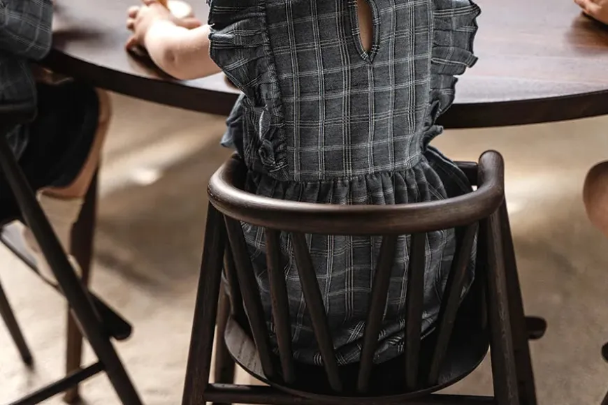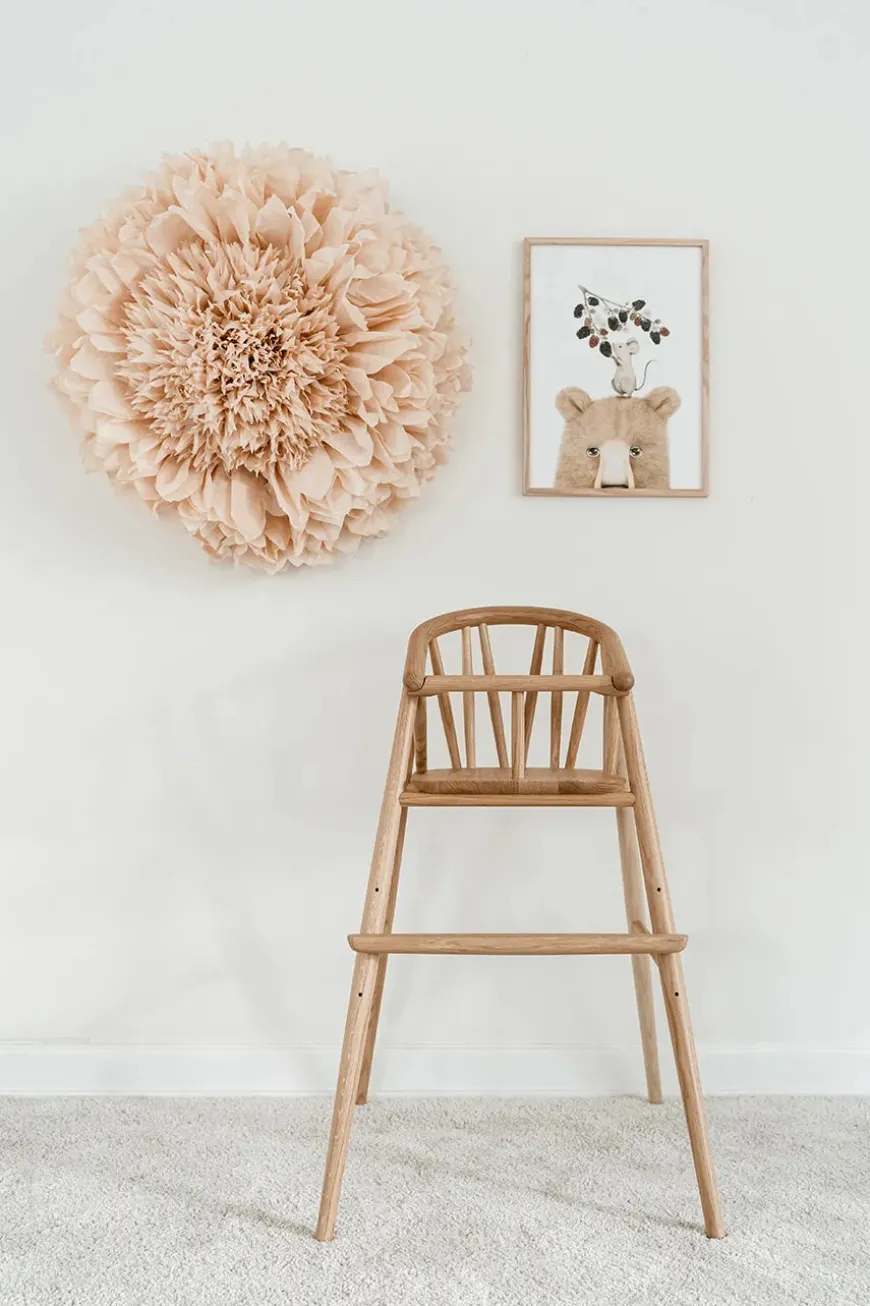 Saga højstolen fra Oaklings blev designet af Nina Bruun i 2021. Højstolen vil med sit tidløse og enkle udtryk smukt passe ind sammen med resten af hjemmets indretning. Den elegante højstol er en ny klassiker i hjemmet med små børn. Saga er fremstillet af FSC®-certificeret egetræ* på europæiske fabrikker. Stolen er nem at rengøre, da den er behandlet med en ugiftig mat lak.