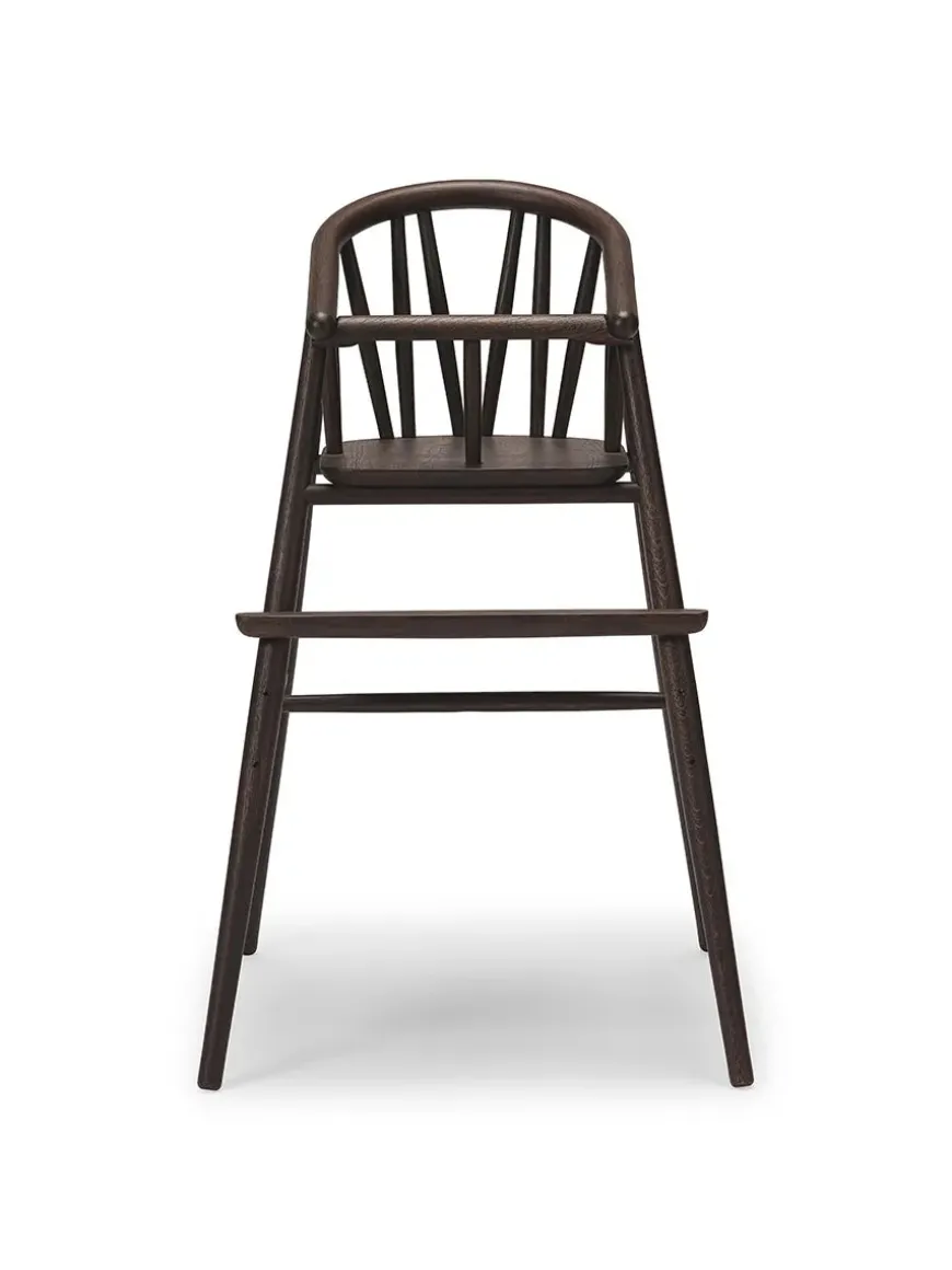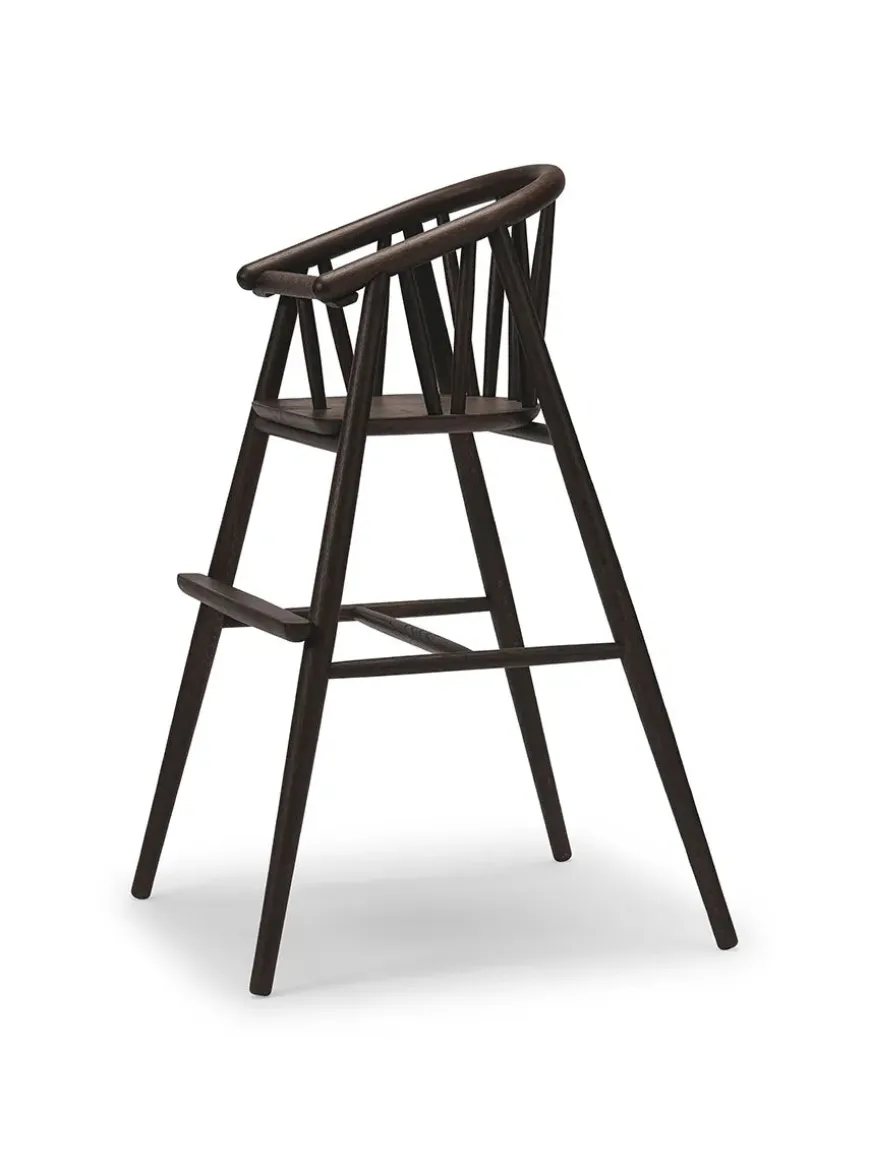 Gør måltider til en fornøjelse og skab smukke minder ved bordet for barnet sammen med resten af familien med Saga højstolen. Saga højstol kommer i tre varianter. Højstolen er her i egetræ med røget bejdse. Det mørke egetræ giver stolen et elegant look.