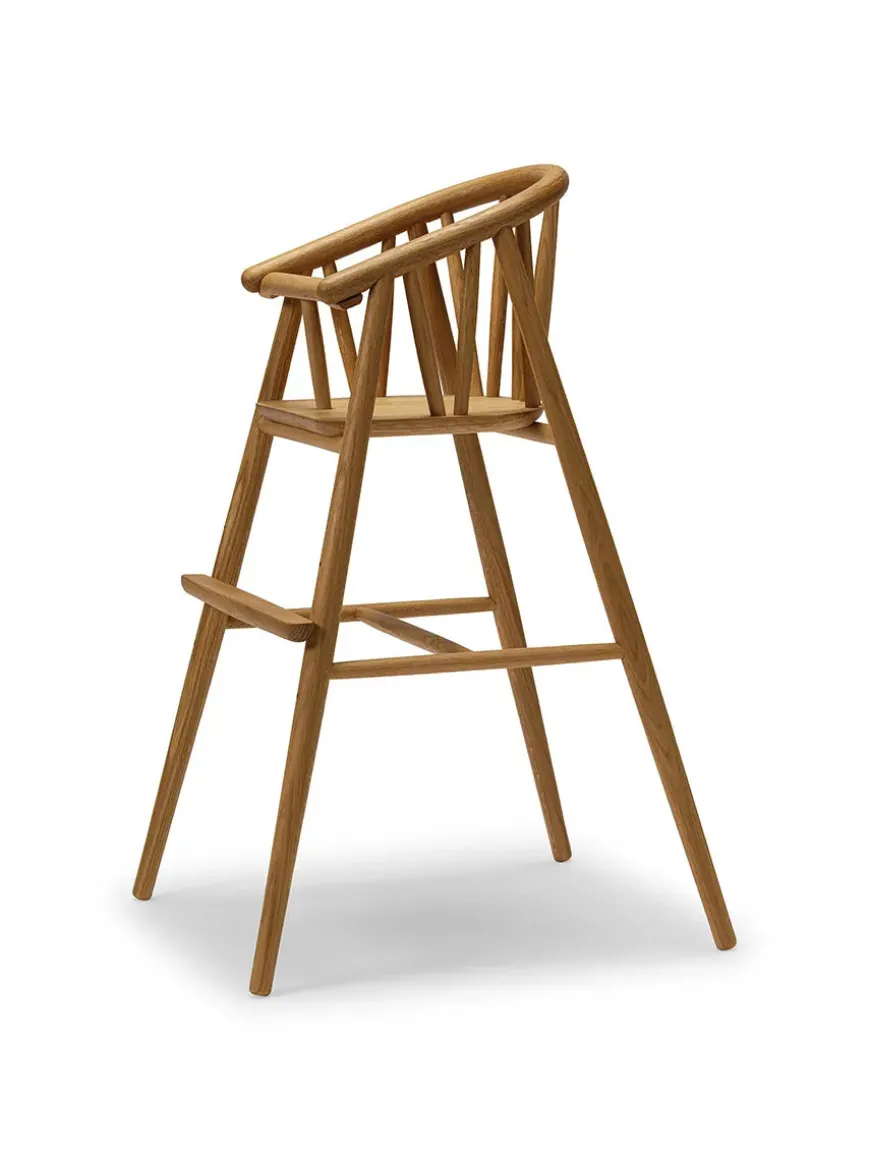 Saga højstolen fra Oaklings blev designet af Nina Bruun i 2021. Højstolen vil med sit tidløse og enkle udtryk smukt passe ind sammen med resten af hjemmets indretning. Den elegante højstol er en ny klassiker i hjemmet med små børn.