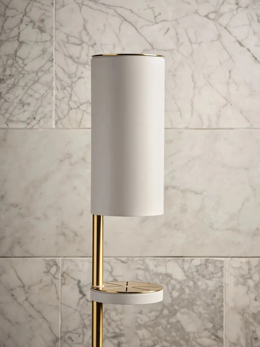 Sensorstyret håndsprit- og sæbedispenser fra VOLA i en fritstående version. Den æstetisk smukke dispenser har en slankt og enkelt design og har samtidig den praktiske funktion, at den er berøringsfri. Der medfølger separate pumpemoduler, så den kan bruges til sæbe, skum eller desinfektionsspray.