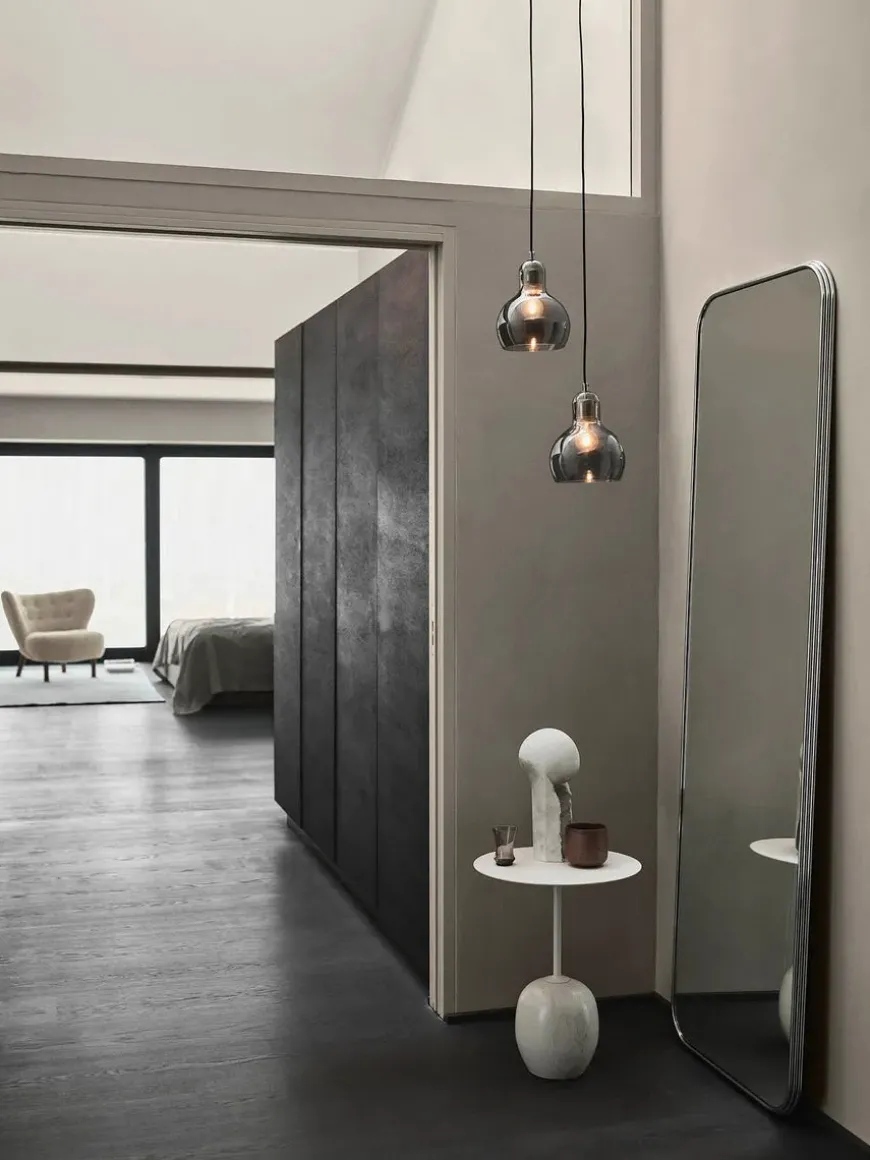 Det lille Sillon spejl fra &Tradition er designet Sebastian Herkner og laves krom eller messing. Det runde Sillon spejl har en diameter på 46 cm.