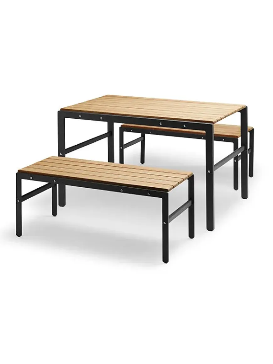 Skagerak Reform havesæt fra Fritz Hansen i farverne Anthracite Black eller Hunter Green. Sættet består af to bænke og et bord. Reform bænken og bordet er et klassisk men stadigvæk helt sit eget. Sættet er lavet i aluminium og har et blødt udtryk. Vælg Reform i Hunter green eller Anthracite black med teaktræ.