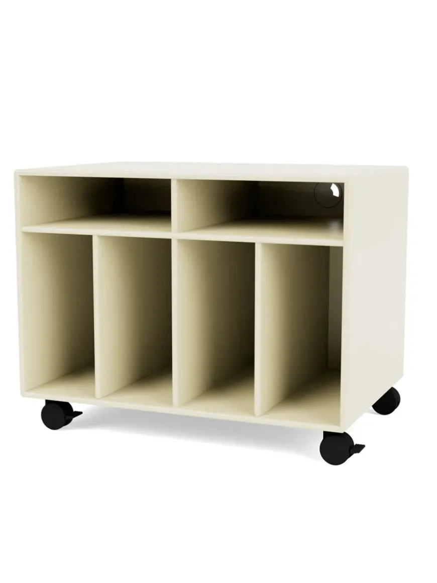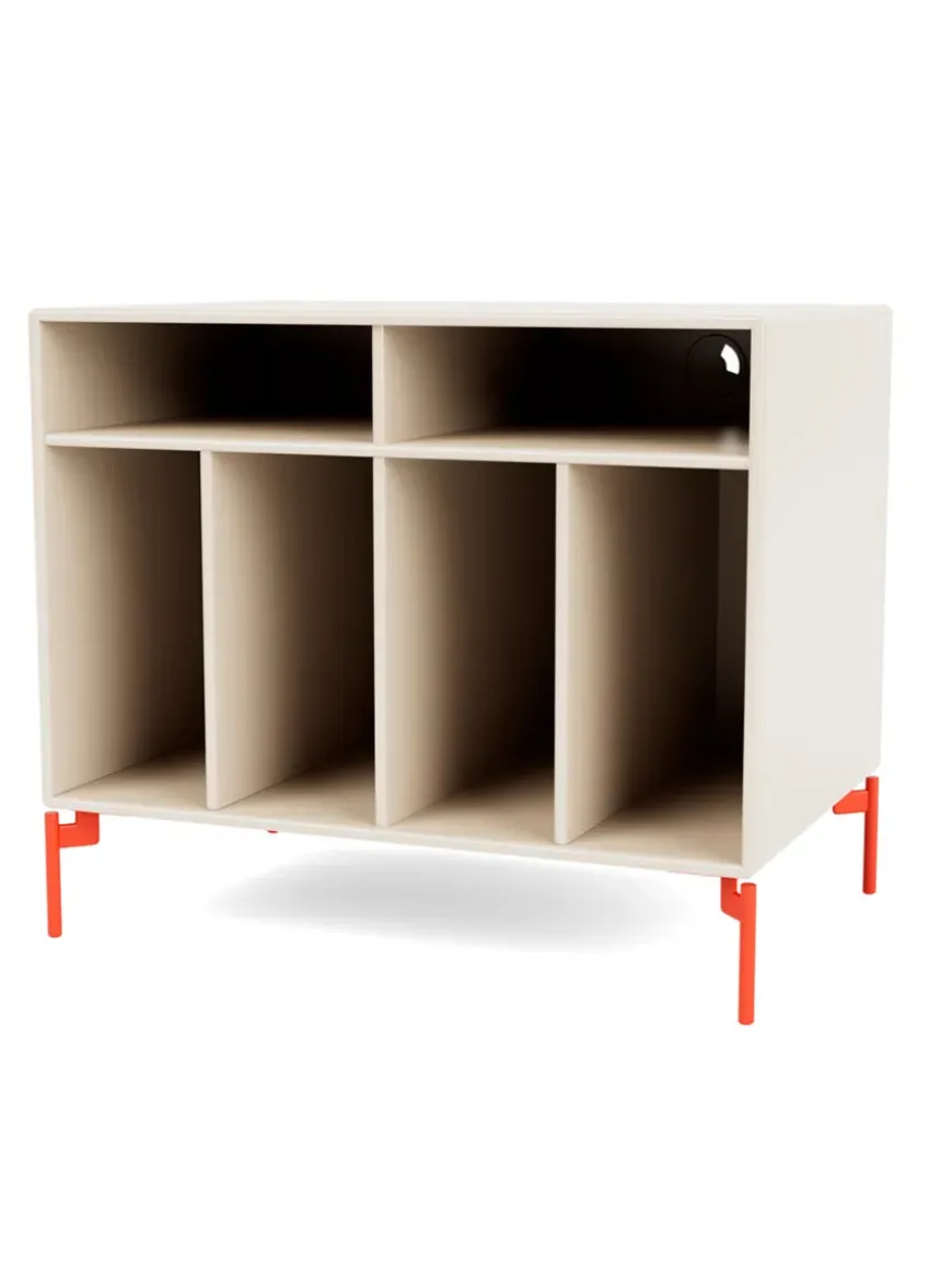 Bag Spin modulet er der kabelgennemføring, således du kan skjule grimme ledninger. Montana Spin I modul med seks rum, der eksempelvis passer til LP’ere eller grammofonplader.