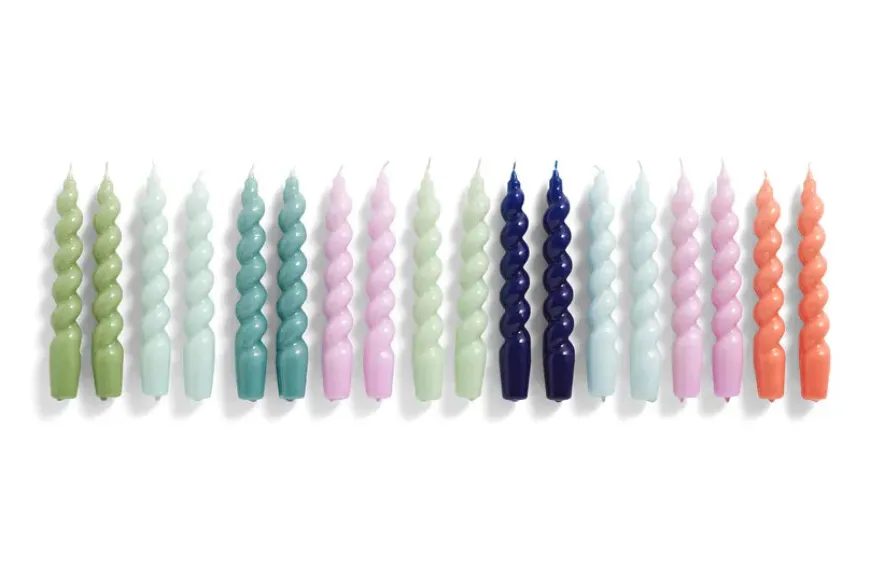 Smukke snoede lys i flere forskellige farver fra Hay. Brug de smukke lys i dine favorit lysestager og giv farve og glæde til rummet. Fås i flere varianter.Mål: Ø2,6 x H19Antal: 6 stkMateriale: ParaffinFarver: Green, artic blue, teal (540751)Lilac, mint, midnight blue (540752)Ice blue, lilac, apricot (540753)