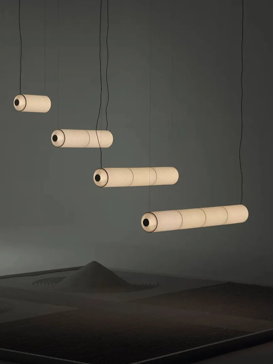 Tekiò kollektionen består af lamper i forskellige former og størrelser. Her kombineres tradition med moderne elementer. Der findes flere forskellige varianter i Tékio-serien, som alle har hver deres unikke udtryk. Eftersom de har hver deres udtryk kan lampen både bruges alene eller i grupper. Her får du altså fleksibilitet til selv at skabe den ønskede belysningseffekt og udtryk. Designeren bag, Anthony Dickens, blev inspireret af den traditionelle japanske lanterne lavet af washi papir, som går tilbage til det 14. århundrede. Washi-papiret er håndlavet, og papiret sikrer at lampen giver et blødt og behageligt lys.